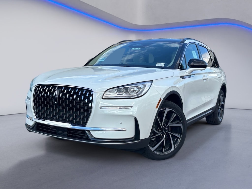Corsair 19" Bright Machined Aluminum Wheels, 2 Additional USB Ports in Rear of Center Console, 360-Degree Camera, 4-Wheel Disc Brakes, 60/40 EasyFold Rear Seat w/Power Seatback Release, 9 Speakers, ABS brakes, Air Conditioning, Alexa Built-In, Alloy wheels, AM/FM radio: SiriusXM with 360L, Apple CarPlay/Android Auto, Auto High-beam Headlights, Auto-dimming Rear-View mirror, Automatic temperature control, Brake assist, Bumpers: body-color, Compass, Cruise Control, Delay-off headlights, Driver door bin, Driver vanity mirror, Dual front impact airbags, Dual front side impact airbags, Electronic Stability Control, Emergency communication system: 911 Assist, Equipment Group 201A, Four wheel independent suspension, Frameless Auto Dimming Rearview Mirror, Front anti-roll bar, Front Bucket Seats, Front Center Armrest, Front dual zone A/C, Front Parking Sensors, Front reading lights, Fully automatic headlights, Hands-Free Liftgate, Heated and Cooled Seats, Heated door mirrors, Heated Sideview Mirrors, Heated Steering Wheel, Heated/Ventilated Driver & Front Passenger Seats, Illuminated entry, Knee airbag, Leather steering wheel, Low tire pressure warning, Memory seat, Navigation system: Connected Navigation (4-year trial), Occupant sensing airbag, Outside temperature display, Overhead airbag, Overhead console, Panic alarm, Panoramic Vista Roof w/Power Shade, Passenger door bin, Passenger vanity mirror, Phone As A Key (PAAK), Post-Collision Braking, Power door mirrors, Power driver seat, Power Liftgate, Power passenger seat, Power steering, Power Tilt/Telescoping Steering Column w/Memory, Power windows, Premium Leather-Trimmed Heated Captain's Chairs, Radio data system, Radio: Lincoln Premium Audio System w/MP3, Rain Sensing Wipers, Rear anti-roll bar, Rear Parking Sensors, Rear reading lights, Rear seat center armrest, Rear window defroster, Rear window wiper, Rearview Camera, Remote keyless entry, Reverse Brake Assist, Security system, SiriusXM w/360L Radio, Speed-sensing steering, Speed-Sensitive Wipers, Split folding rear seat, Spoiler, Steering wheel mounted A/C controls, Steering wheel mounted audio controls, SYNC 4, Tachometer, Telescoping steering wheel, Tilt steering wheel, Traction control, Trip computer, Universal Garage Door Opener, Variably intermittent wipers, Wheels: 20" Bright Machined Aluminum, Windshield Wiper De-Icer, Wireless Charging Pad, (Must finance with Ford Motor Credit to receive online pricing - see dealer for details.) Proudly. Reserve