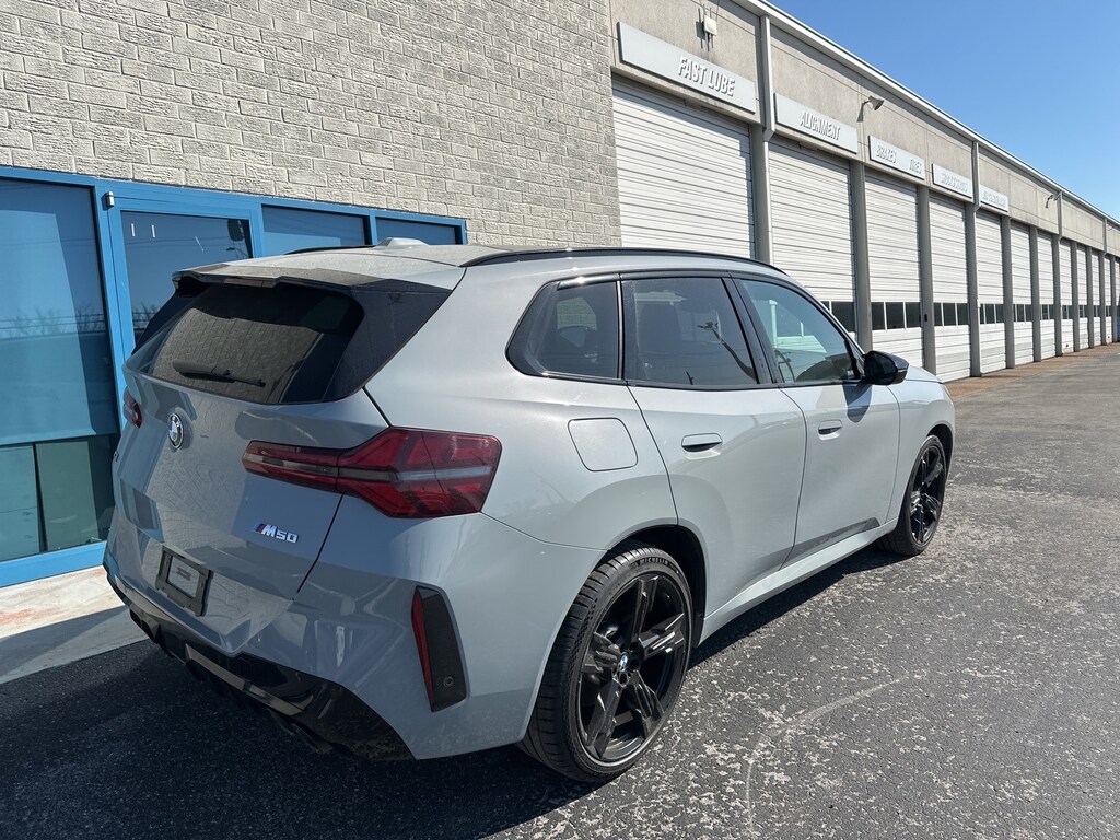 2025 BMW X3 M50 xDrive X3 M50 xDrive, 4D Sport Utility, I6, 8-Speed Automatic, AWD, Gray, 12 Speakers, 4-Wheel Disc Brakes, ABS brakes, Adaptive suspension, Air Conditioning, Alloy wheels, AM/FM Radio, AM/FM radio: SiriusXM, Apple CarPlay and Android Auto Compatibility, Auto High-beam Headlights, Auto-dimming door mirrors, Auto-dimming Rear-View mirror, Automatic temperature control, BMW Assist ECall, BMW TeleServices, Brake assist, Bumpers: body-color, Cruise Control, Delay-off headlights, Driver door bin, Driver vanity mirror, Dual front impact airbags, Dual front side impact airbags, Electronic Stability Control, Emergency communication system: BMW Assist eCall, Four wheel independent suspension, Front anti-roll bar, Front Bucket Seats, Front Center Armrest, Front dual zone A/C, Front reading lights, Fully automatic headlights, Garage door transmitter, Heated and Cooled Seats, Heated door mirrors, Heated Front Seats, Heated steering wheel, Hi-Fi Sound System, Illuminated entry, Knee airbag, Leather steering wheel, Low tire pressure warning, Lumbar Support, Memory seat, Navigation, Navigation system: BMW Maps Navigation, Occupant sensing airbag, Outside temperature display, Overhead airbag, Overhead console, Panic alarm, Passenger door bin, Passenger vanity mirror, Personal ESIM 5G, Power door mirrors, Power driver seat, Power Front Seats, Power Liftgate, Power passenger seat, Power steering, Power windows, Radio data system, Rain sensing wipers, Rear anti-roll bar, Rear reading lights, Rear seat center armrest, Rear window defroster, Rear window wiper, Rearview Camera, Remote keyless entry, Security system, SiriusXM Satellite Radio with 1 Year Subscription, Speed-sensing steering, Speed-Sensitive Wipers, Split folding rear seat, Spoiler, Sport Seats, Sport steering wheel, Steering wheel mounted audio controls, Tachometer, Telescoping steering wheel, Tilt steering wheel, Traction control, Trip computer, Turn signal indicator mirrors, Variably intermittent wipers, Veganza Perforated and Quilted Upholstery, Wireless Device Charging, (Must finance with Ford Motor Credit to receive online pricing - see dealer for details.) Proudly, X3 M50 xDrive, 4D Sport Utility, I6, 8-Speed Automatic, AWD, Gray. Gray 8-Speed Automatic Clean CARFAX. CARFAX One-Owner.