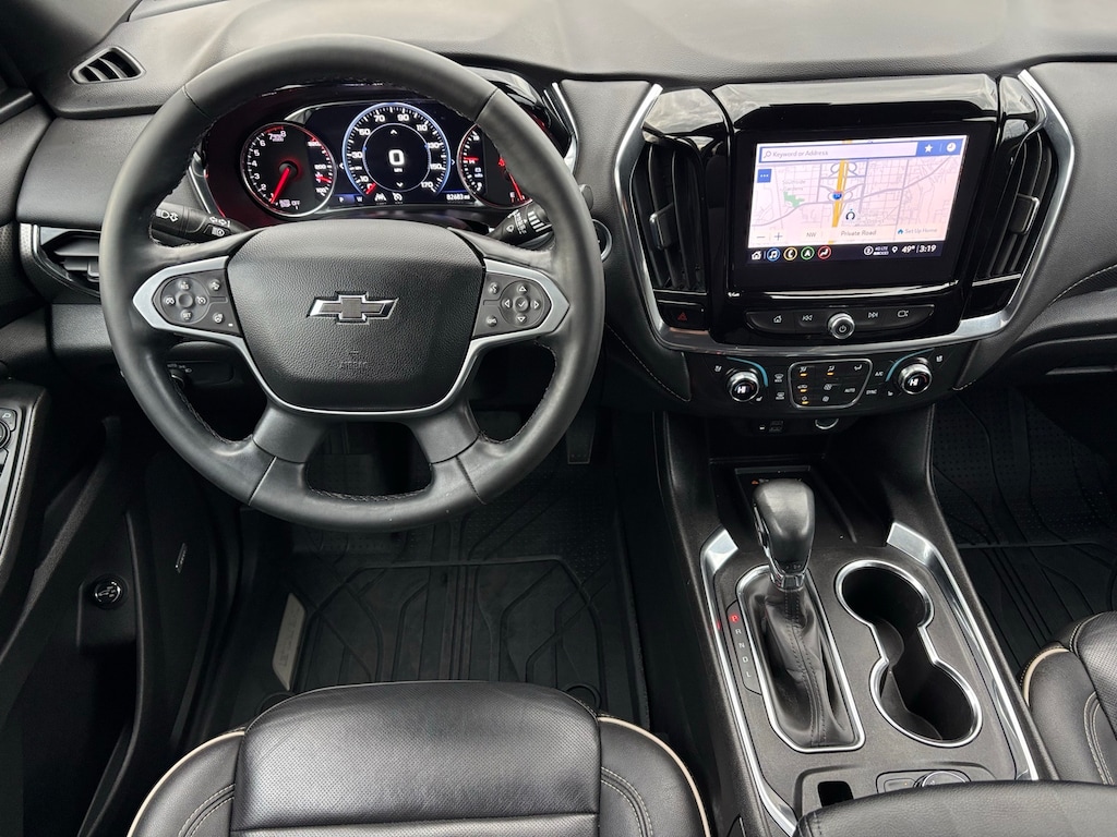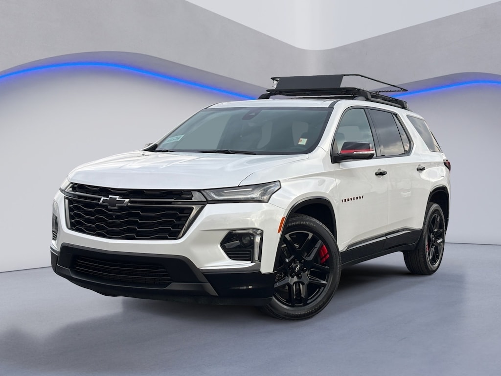 2023 Chevrolet Traverse Premier Traverse Premier, 4D Sport Utility, 3.6L V6 SIDI VVT, 9-Speed Automatic, FWD, Iridescent Pearl Tricoat, Jet Black Leather, 10 Speakers, 3.49 Axle Ratio, 4-Wheel Disc Brakes, 6-Way Power Front Passenger Seat, 8-Way Power Driver Seat Adjuster, ABS brakes, Air Conditioning, Alloy wheels, AM/FM radio: SiriusXM with 360L, Automatic temperature control, Black Bowtie, Black Door Handles, Black Roof Rails, Bose Premium 10-Speaker Audio System Feature, Brake assist, Dual front impact airbags, Dual front side impact airbags, Dual SkyScape 2-Panel Power Sunroof, Electronic Stability Control, Emergency communication system, Four wheel independent suspension, Front anti-roll bar, Front dual zone A/C, Front License Plate Bracket Mounting Package, Heated 2nd Row Outboard Position Seats, Heated Driver & Front Passenger Seats, Heavy-Duty Cooling System, Hitch Guidance w/Hitch View, Low tire pressure warning, Memory seat, Navigation System, Occupant sensing airbag, Ornamentation, Overhead airbag, Power driver seat, Power Liftgate, Power steering, Power windows, Preferred Equipment Group 1LZ, Premium audio system: Chevrolet Infotainment 3 Plus, Radio data system, Radio: Chevrolet Infotainment 3 Plus System w/Navi, Rear air conditioning, Rear anti-roll bar, Rear window defroster, Rear window wiper, Rearview Camera, Redline Accent Decals (LPO), Redline Edition, Remote keyless entry, SiriusXM w/360L, Speed-sensing steering, Steering wheel memory, Steering wheel mounted audio controls, Thatcham Black Lug Nut & Wheel Lock Kit (LPO), Traction control, Trailering Assist Guidelines, Trailering Equipment, Variably intermittent wipers, Ventilated Driver & Front Passenger Seats, Wheels: 20 Gloss Black Painted Alum w/Red Stripes, Wheels: 20 Metallic Machined-Face Aluminum, 3rd row seats: split-bench, Apple CarPlay/Android Auto, Auto High-beam Headlights, Auto-dimming door mirrors, Auto-dimming Rear-View mirror, Bumpers: body-color, Compass, Cruise Control, Delay-off headlights, Driver door bin, Driver vanity mirror, Front Bucket Seats, Front Center Armrest, Front Passenger 2-Way Power Lumbar, Front reading lights, Fully automatic headlights, Garage door transmitter, Heated and Cooled Seats, Heated door mirrors, Heated rear seats, Heated steering wheel, Illuminated entry, Leather steering wheel, Outside temperature display, Overhead console, Panic alarm, Passenger door bin, Passenger vanity mirror, Perforated Leather-Appointed Seat Trim, Power door mirrors, Power Driver Lumbar Control, Power passenger sea