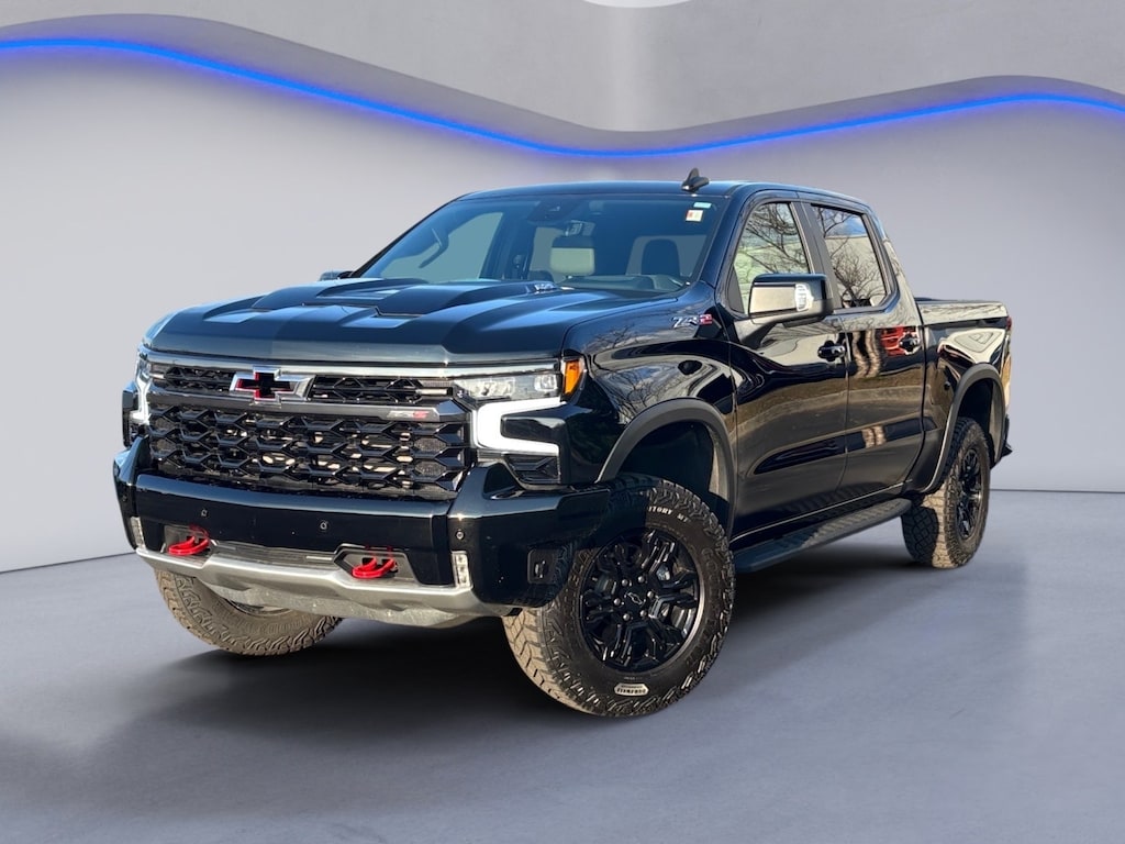 2025 Chevrolet Silverado 1500 ZR2 Silverado 1500 ZR2, 4D Crew Cab, EcoTec3 6.2L V8, 10-Speed Automatic, 4WD, Black, Jet Black/Graystone Leather, 10-Way Power Driver Seat w/Lumbar, 10-Way Power Passenger Seat Adjuster w/Lumbar, 12.3" Multicolor Reconfigurable Digital Display, 120-Volt Bed Mounted Power Outlet, 120-Volt Interior Power Outlet, 15" Diagonal Multicolor Head-Up Display, 170 Amp Alternator, 2 USB Data Ports, 220 Amp Alternator, 2nd Row Heated Outboard Seats, 3 Years SiriusXM, 3.23 Rear Axle Ratio, 4-Wheel Disc Brakes, 7 Speakers, 850 Cold-Cranking Amps Heavy-Duty Battery, ABS brakes, Adaptive Cruise Control, Air Conditioning, All-Weather Floor Liner (LPO), Alloy wheels, AM/FM radio: SiriusXM with 360L, Apple CarPlay/Android Auto, Auto High-beam Headlights, Auto-dimming door mirrors, Auto-Dimming Inside Rear-View Mirror, Auto-dimming Rear-View mirror, Automatic Emergency Braking, Automatic temperature control, Auxiliary External Transmission Oil Cooler, Bed View Camera, Block heater, Bluetooth® For Phone, Brake assist, Chevytec Spray-On Black Bedliner, Color-Keyed Carpeting Floor Covering, Compass, Cruise Control, Deep-Tinted Glass, Delay-off headlights, Driver door bin, Driver Memory, Driver vanity mirror, Dual Active Exhaust, Dual Exhaust, Dual front impact airbags, Dual front side impact airbags, Dual Rear USB Ports (Charge Only), Electric Rear-Window Defogger, Electronic Cruise Control, Electronic Stability Control, Electronic Transmission Range Selector Shifter, Emergency communication system: OnStar, Engine Block Heater, External Engine Oil Cooler, EZ Lift Power Lock & Release Tailgate, Floor Mounted Center Console, Following Distance Indicator, Forward Collision Alert, Front anti-roll bar, Front Bucket Seats, Front Center Armrest, Front dual zone A/C, Front fog lights, Front LED Fog Lamps, Front License Plate Kit, Front Pedestrian Braking, Front Rain-Sensing Wipers, Front reading lights, Front wheel independent suspension, Fully automatic headlights, Garage door transmitter, HD Surround Vision, Heated and Cooled Seats, Heated door mirrors, Heated Driver & Front Outboard Passenger Seats, Heated rear seats, Heated Steering Wheel, Heated steering wheel, Heavy-Duty Air Filter, High Gloss Black Mirror Caps, Hill Descent Control, Hitch Guidance, Hitch Guidance w/Hitch View, Illuminated entry, In-Vehicle Trailering System App, Integrated Trailer Brake Controller, IntelliBeam Automatic High Beam On/Off, Keyless Open & Start, Lane Keep Assist w/Lane Departure Warning, LED Cargo Area Lighting, Low tire pressure warning, Manual Tilt/Telescoping Steering Column, Memory seat, Mobile Service Plus, Multi-Flex Tailgate, Occupant sensing airbag, OnStar Services Capable, Outside Heated Power-Adjustable Mirrors, Outside temperature display, Overhead airbag, Overhead console, Panic alarm, Passenger door bin, Passenger vanity mirror, Perforated Leather Seat Trim, Performance Red Recovery Hooks, Perimeter Lighting, Power door mirrors, Power driver seat, Power Front Passenger Windows w/Express Up/Down, Power Front Windows w/Driver Express Up/Down, Power passenger seat, Power Rear Windows w/Express Down, Power Sliding Rear Window w/Rear Defogger, Power steering, Power Sunroof, Power Tilt & Telescoping Steering Column, Power windows, Preferred Equipment Group 3LT, Premium audio system: Chevrolet Infotainment 3 Premium, Premium Bose 7-Speaker Sound System, Radio data system, Radio: Chevrolet Infotainment 3 Premium System, Rain sensing wipers, Rear Camera Mirror, Rear Cross Traffic Braking, Rear Pedestrian Alert, Rear reading lights, Rear seat center armrest, Rear step bumper, Rear Wheelhouse Liners, Rear window defroster, Remote keyless entry, Remote Vehicle Starter System, Safety Alert Seat, Security system, SiriusXM w/360L Trial Subscription, Speed-sensing steering, Split folding rear seat, Standard Tailgate, Steering Wheel Audio Controls, Steering wheel mounted audio controls, Tachometer, Technology Package, Teen Driver, Telescoping