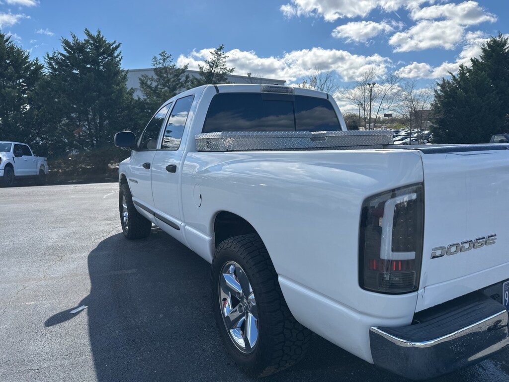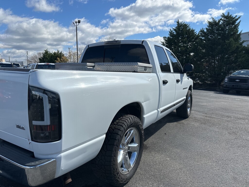 2003 Dodge Ram 1500 SLT 4D Quad Cab, Magnum 5.9L V8 SMPI, 4-Speed Automatic, RWD, White, Dark Slate Gray Cloth, 3.55 Axle Ratio, 4 Speakers, 4-Wheel Disc Brakes, ABS brakes, Air Conditioning, AM/FM Compact Disc w/Changer Control, AM/FM radio, Bumpers: chrome, CD player, Cloth 40/20/40 Split Bench Seat, Compass, Cruise Control, Driver door bin, Dual front impact airbags, Electronically Controlled Throttle, Front anti-roll bar, Front Center Armrest w/Storage, Front reading lights, Front wheel independent suspension, Heated door mirrors, Next Generation Engine Controller, Outside temperature display, Overhead console, Passenger door bin, Passenger vanity mirror, Power door mirrors, Power steering, Power windows, Rear step bumper, Speed-Sensitive Wipers, Tachometer, Tilt steering wheel, Trip computer, Variably intermittent wipers, Voltmeter. White 4-Speed Automatic