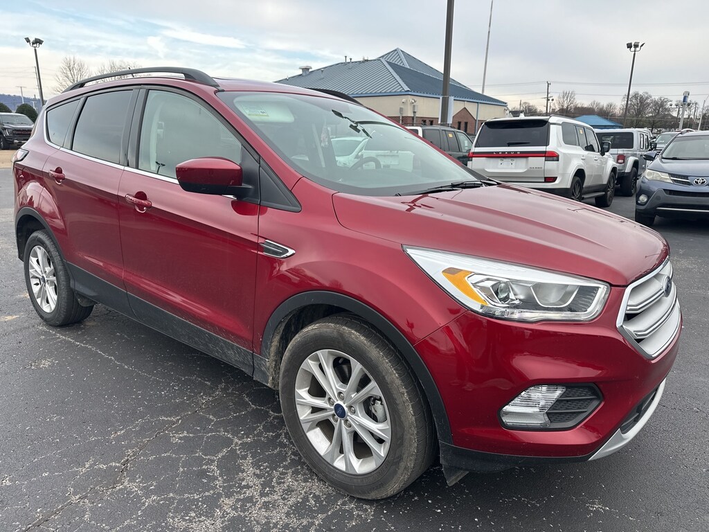2018 Ford Escape SEL 3.21 Axle Ratio, 4-Wheel Disc Brakes, 6 Speakers, ABS brakes, Air Conditioning, Alloy wheels, AM/FM radio: SiriusXM, AppLink/Apple CarPlay and Android Auto, Automatic temperature control, Brake assist, Bumpers: body-color, CD player, Compass, Cruise Control, Delay-off headlights, Driver door bin, Driver vanity mirror, Dual front impact airbags, Dual front side impact airbags, Electronic Stability Control, Emergency communication system: 911 Assist, Equipment Group 300A, Four wheel independent suspension, Front anti-roll bar, Front Bucket Seats, Front Center Armrest, Front dual zone A/C, Front fog lights, Front reading lights, Fully automatic headlights, Heated and Cooled Seats, Heated door mirrors, Heated Leather-Trimmed Front Bucket Seats, Illuminated entry, Knee airbag, Leather Shift Knob, Low tire pressure warning, Occupant sensing airbag, Outside temperature display, Overhead airbag, Overhead console, Panic alarm, Panoramic Vista Roof, Passenger door bin, Passenger vanity mirror, Power door mirrors, Power driver seat, Power Liftgate, Power steering, Power windows, Radio data system, Radio: AM/FM Stereo w/Single-CD/MP3 Player, Rear anti-roll bar, Rear Parking Sensors, Rear seat center armrest, Rear window defroster, Rear window wiper, Rearview Camera, Remote keyless entry, Roof rack: rails only, Security system, Speed-sensing steering, Split folding rear seat, Steering wheel mounted audio controls, SYNC 3 Communications & Entertainment System, SYNC Connect, Tachometer, Telescoping steering wheel, Tilt steering wheel, Traction control, Trip computer, Variably intermittent wipers, Wheels: 17" Sparkle Silver-Painted Aluminum, (Must finance with Ford Motor Credit to receive online pricing - see dealer for details.) Proudly. Ruby Red Awards: