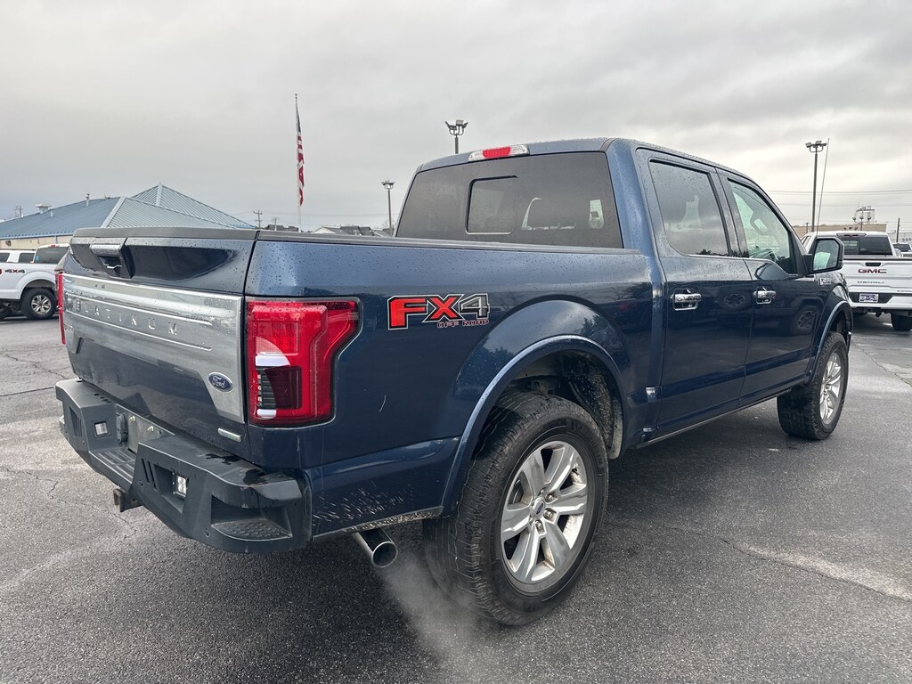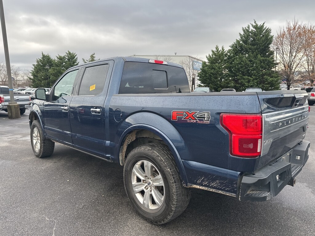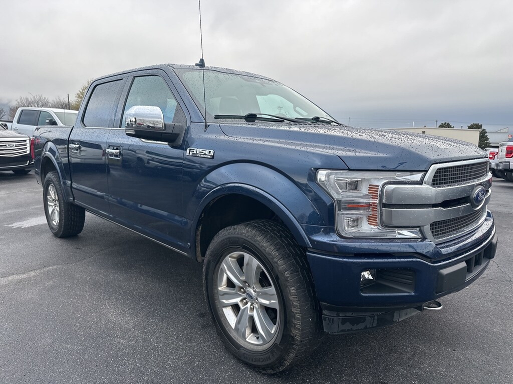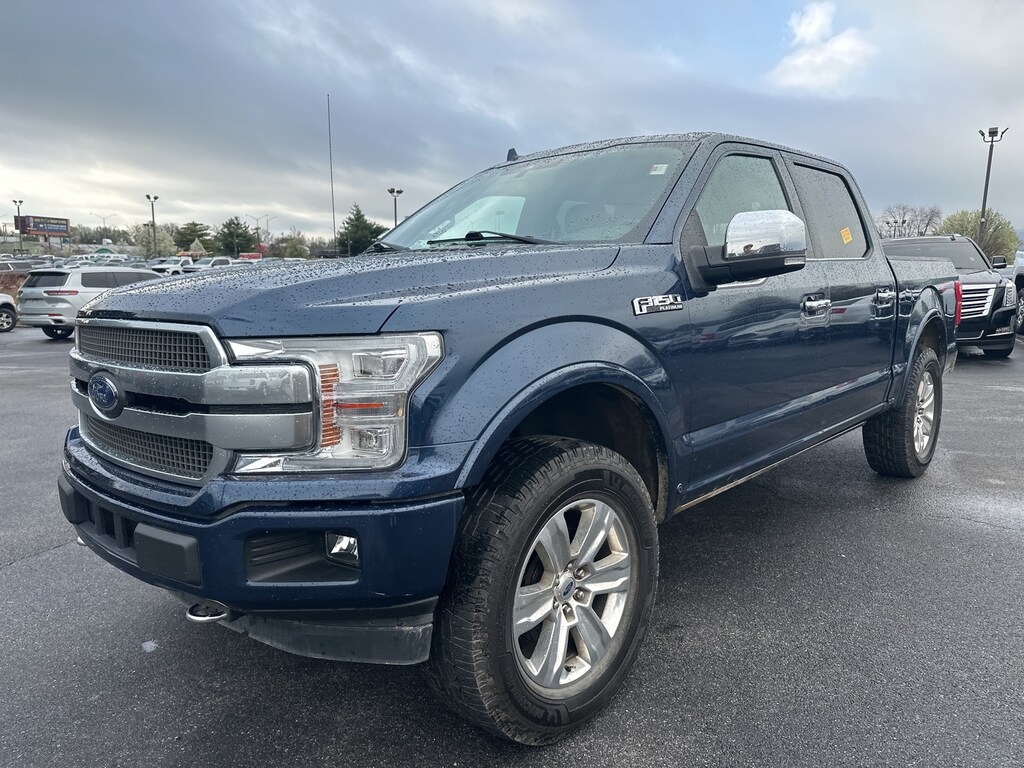 2020 Ford F-150 Platinum F-150 Platinum, 4D SuperCrew, 3.5L V6 EcoBoost, 10-Speed Automatic, 4WD, Blue, Black Leather, 10 Speakers, 20" Polished Aluminum Wheels, 3.31 Axle Ratio, 4-Wheel Disc Brakes, ABS brakes, Adaptive Cruise Control, Adjustable pedals, Air Conditioning, Alloy wheels, AM/FM radio: SiriusXM, Auto High-beam Headlights, Auto tilt-away steering wheel, Auto-dimming door mirrors, Auto-dimming Rear-View mirror, Automatic temperature control, Black Unique Multi-Contour Leather Bucket Seats, Brake assist, Bumpers: body-color, Class IV Trailer Hitch Receiver, Compass, Cruise Control, Delay-off headlights, Driver door bin, Driver vanity mirror, Dual front impact airbags, Dual front side impact airbags, Electronic Locking w/3.55 Axle Ratio, Electronic Stability Control, Emergency communication system: SYNC 3 911 Assist, Equipment Group 701A Luxury, Extended Range 36 Gallon Fuel Tank, Front anti-roll bar, Front Bucket Seats, Front Center Armrest, Front dual zone A/C, Front fog lights, Front reading lights, Front wheel independent suspension, Fully automatic headlights, FX4 Off-Road Package, Garage door transmitter, Genuine wood door panel insert, GVWR: 7,050 lbs Payload Package, Heated and Cooled Seats, Heated door mirrors, Heated rear seats, Heated steering wheel, Illuminated entry, Integrated Trailer Brake Controller, Low tire pressure warning, Max Trailer Tow Package, Memory seat, Navigation System, Occupant sensing airbag, Outside temperature display, Overhead airbag, Overhead console, Panic alarm, Passenger door bin, Passenger vanity mirror, Pedal memory, Power door mirrors, Power driver seat, Power passenger seat, Power steering, Power windows, Pro Trailer Backup Assist, Radio data system, Radio: B&O Sound System by Bang & Olufsen, Rain sensing wipers, Rear Parking Sensors, Rear reading lights, Rear seat center armrest, Rear step bumper, Rear window defroster, Rearview Camera, Remote keyless entry, Security system, SiriusXM Radio, Speed-sensing steering, Split folding rear seat, Steering wheel memory, Steering wheel mounted audio controls, SYNC 3, Tachometer, Tailgate Step w/Tailgate Lift Assist, Technology Package, Telescoping steering wheel, Tilt steering wheel, Traction control, Tray Style Floor Liner, Trip computer, Turn signal indicator mirrors, Twin Panel Moonroof, Variably intermittent wipers, Ventilated front seats, Voice-Activated Touchscreen Navigation, Voltmeter, (Must finance with Ford Motor Credit to receive online pricing - see dealer for details.) Proudly, F-150 Platinum, 4D SuperCrew, 3.5L V6 EcoBoost, 10-Speed Automatic, 4WD, Blue, Black Leather. Blue 10-Speed Automatic Clean CARFAX.