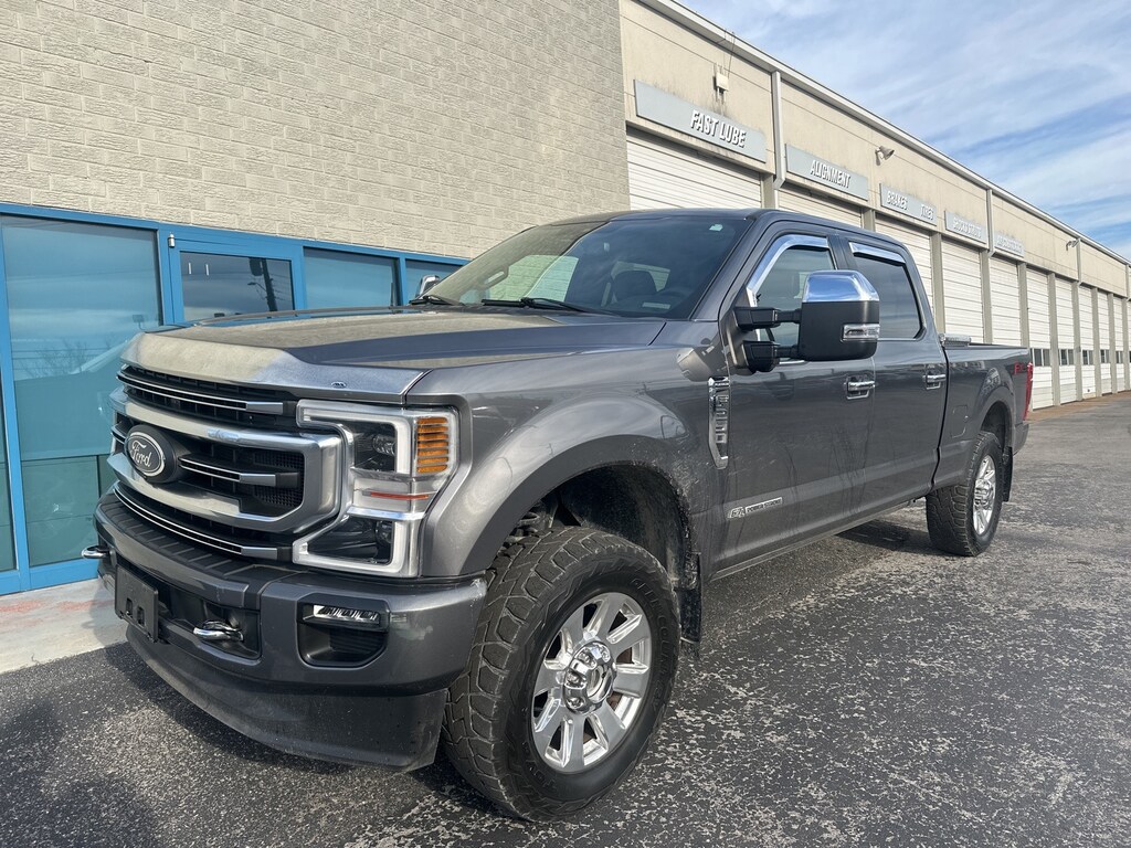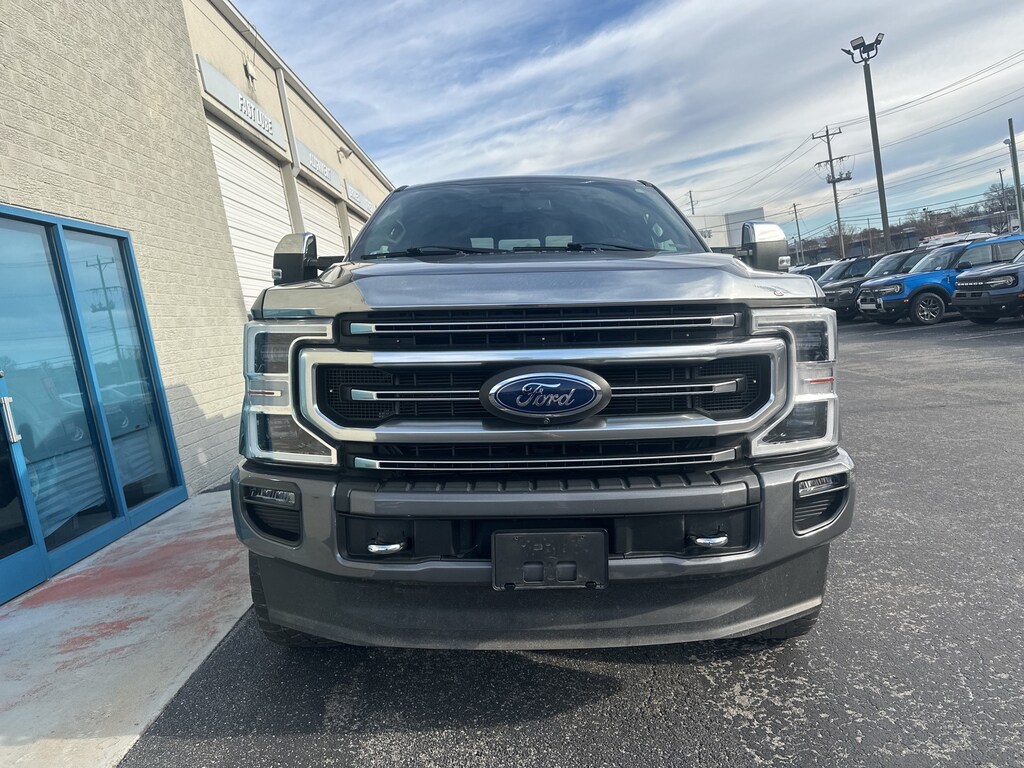 2021 Ford F-250SD Platinum F-250SD Platinum, 4D Crew Cab, Power Stroke 6.7L V8 DI 32V OHV Turbodiesel, 10-Speed Automatic, 4WD, Gray, Black / Dark Marsala, 10 Speakers, 110V/400W Outlet, 3.73 Axle Ratio, 4-Wheel Disc Brakes, 5th Wheel/Gooseneck Hitch Prep Package, ABS brakes, Adjustable pedals, Air Conditioning, All-Weather Floor Mats, Alloy wheels, AM/FM radio: SiriusXM, Auto High-beam Headlights, Auto-dimming Rear-View mirror, Automatic temperature control, Brake assist, Compass, Cruise Control, Delay-off headlights, Driver door bin, Driver vanity mirror, Dual front impact airbags, Dual front side impact airbags, Electronic Stability Control, Electronic-Locking w/3.55 Axle Ratio, Emergency communication system: SYNC 3 911 Assist, Flow-Through Console, Front & Rear Wheel Well Liners (Pre-Installed), Front anti-roll bar, Front Bucket Seats, Front Center Armrest, Front dual zone A/C, Front fog lights, Front reading lights, Fully automatic headlights, FX4 Off-Road Package, Gooseneck Hitch Kit (Pre-Installed), GVWR: 10,000 lb Payload Package, Heated door mirrors, Hill Descent Control, Illuminated entry, Lane-Keeping Alert, Leather steering wheel, Low tire pressure warning, Off-Road Specifically Tuned Shock Absorbers, Outside temperature display, Overhead airbag, Overhead console, Panic alarm, Passenger door bin, Passenger vanity mirror, Power door mirrors, Power driver seat, Power passenger seat, Power steering, Power windows, Pro Trailer Backup Assist - High Capacity, Radio data system, Radio: B&O System by Bang & Olufsen, Rear Parking Sensors, Rear reading lights, Rear seat center armrest, Rear step bumper, Rear window defroster, Rearview Camera, Remote keyless entry, Security system, SiriusXM Radio, Split folding rear seat, Steering wheel mounted audio controls, SYNC 3 Communications & Entertainment System, Tachometer, Telescoping steering wheel, Tilt steering wheel, Traction control, Trip computer, Turn signal indicator mirrors, Twin Panel Power Moonroof, Ultimate Trailer Tow Camera System, Unique FX4 Off-Road Box Decal, Upfitter Switches (6), Variably intermittent wipers, (Must finance with Ford Motor Credit to receive online pricing - see dealer for details.) Proudly, F-250SD Platinum, 4D Crew Cab, Power Stroke 6.7L V8 DI 32V OHV Turbodiesel, 10-Speed Automatic, 4WD, Gray, Black / Dark Marsala. Gray 10-Speed Automatic CARFAX One-Owner.
