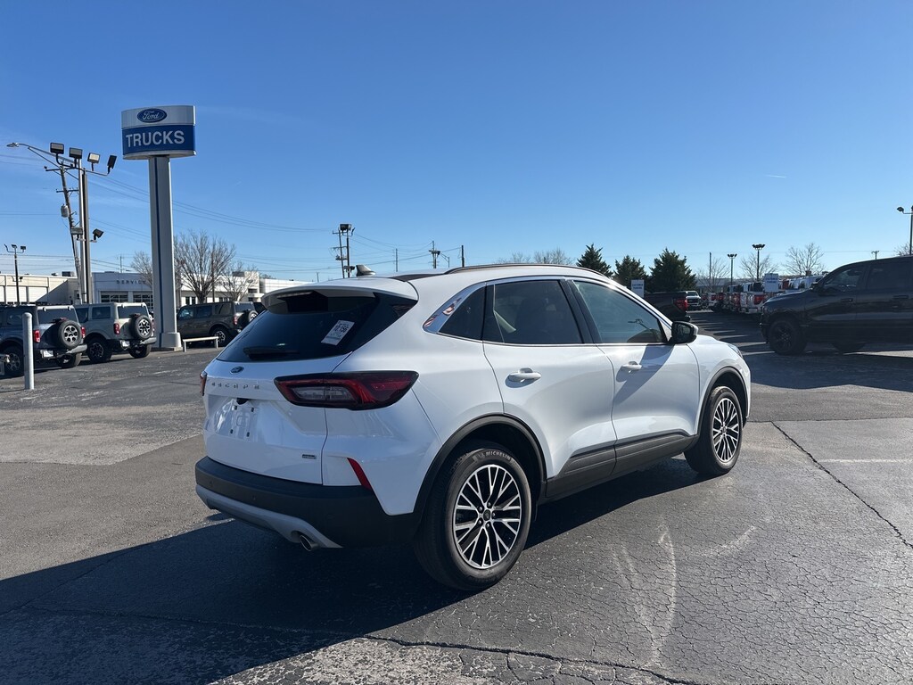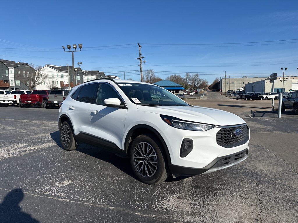 2023 Ford Escape Plug-In Hybrid Base 4D Sport Utility, 2.5L iVCT, eCVT, FWD, Oxford White, Ebony Cloth, Equipment Group 700A, 2.91 Axle Ratio, 4-Wheel Disc Brakes, 6 Speakers, ABS brakes, Air Conditioning, Alloy wheels, AM/FM radio: SiriusXM, AM/FM Stereo, Auto High-beam Headlights, Automatic temperature control, Brake assist, Bumpers: body-color, Compass, Cruise Control, Delay-off headlights, Driver door bin, Driver vanity mirror, Dual front impact airbags, Dual front side impact airbags, Electronic Stability Control, Emergency communication system: SYNC 4 911 Assist, FordPass Connect, Four wheel independent suspension, Front anti-roll bar, Front Bucket Seats, Front Center Armrest, Front dual zone A/C, Front fog lights, Front License Plate Bracket, Front reading lights, Fully automatic headlights, Heated and Cooled Seats, Heated door mirrors, Heated steering wheel, Heated Vinyl/Cloth Front Sport Contour Bucket Seats, Illuminated entry, Knee airbag, Low tire pressure warning, Navigation system: Connected Navigation, Occupant sensing airbag, Outside temperature display, Overhead airbag, Overhead console, Panic alarm, Passenger door bin, Passenger vanity mirror, Power door mirrors, Power driver seat, Power Liftgate, Power steering, Power windows, Radio data system, Rear anti-roll bar, Rear reading lights, Rear seat center armrest, Rear window defroster, Rear window wiper, Rearview Camera, Remote keyless entry, Speed-sensing steering, Speed-Sensitive Wipers, Split folding rear seat, Spoiler, Steering wheel mounted audio controls, SYNC 4 w/Enhanced Voice Recognition, Tachometer, Telescoping steering wheel, Tilt steering wheel, Traction control, Trip computer, Variably intermittent wipers, Wheels: 19" Machined-Face Magnetic Aluminum, (Must finance with Ford Motor Credit to receive online pricing - see dealer for details.) Proudly, 4D Sport Utility, 2.5L iVCT, eCVT, FWD, Oxford White, Ebony Cloth, Equipment Group 700A. Oxford White eCVT