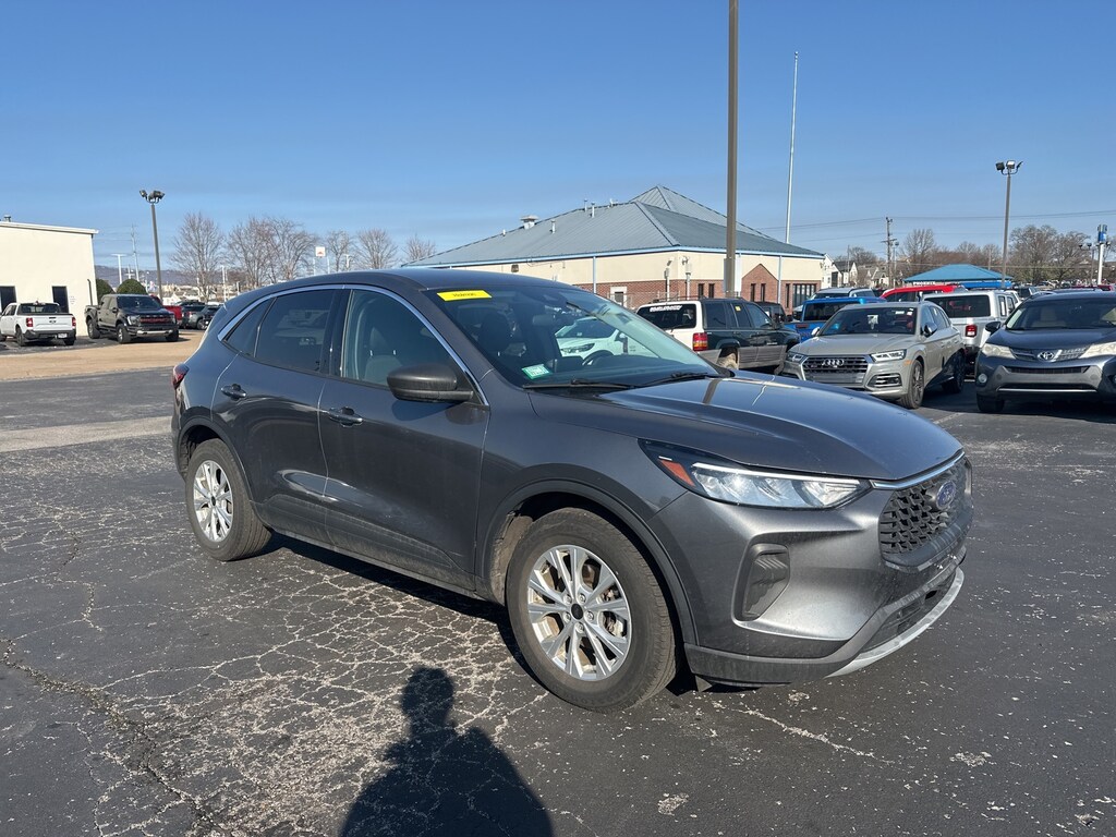 2023 Ford Escape Active Escape Active, 4D Sport Utility, 1.5L EcoBoost, 8-Speed Automatic, FWD, Gray Metallic, Ebony Cloth, Equipment Group 200A, 3.81 Axle Ratio, 4-Wheel Disc Brakes, 6 Speakers, ABS brakes, Air Conditioning, Alloy wheels, AM/FM radio: SiriusXM, AM/FM Stereo, Auto High-beam Headlights, Automatic temperature control, Brake assist, Bumpers: body-color, Cargo Mat, Compass, Cruise Control, Delay-off headlights, Driver door bin, Driver vanity mirror, Dual front impact airbags, Dual front side impact airbags, Easy Access Cargo Shade, Electronic Stability Control, Emergency communication system: SYNC 4 911 Assist, FordPass Connect, Four wheel independent suspension, Front & Rear Floor Liners w/Carpet Mats, Front anti-roll bar, Front Bucket Seats, Front Center Armrest, Front dual zone A/C, Front License Plate Bracket, Front reading lights, Fully automatic headlights, Illuminated entry, Knee airbag, Low tire pressure warning, Occupant sensing airbag, Outside temperature display, Overhead airbag, Overhead console, Panic alarm, Passenger door bin, Passenger vanity mirror, Power door mirrors, Power driver seat, Power Liftgate, Power steering, Power windows, Radio data system, Rear anti-roll bar, Rear reading lights, Rear seat center armrest, Rear window defroster, Rear window wiper, Rearview Camera, Remote keyless entry, Speed-sensing steering, Speed-Sensitive Wipers, Split folding rear seat, Spoiler, Steering wheel mounted audio controls, SYNC 4, Tachometer, Telescoping steering wheel, Tilt steering wheel, Traction control, Trip computer, Unique Cloth Front Bucket Seats, Variably intermittent wipers, Wheels: 17" Shadow Silver-Painted Aluminum, (Must finance with Ford Motor Credit to receive online pricing - see dealer for details.) Proudly, Escape Active, 4D Sport Utility, 1.5L EcoBoost, 8-Speed Automatic, FWD, Gray Metallic, Ebony Cloth, Equipment Group 200A. Gray Metallic 8-Speed Automatic Clean CARFAX. CARFAX One-Owner.