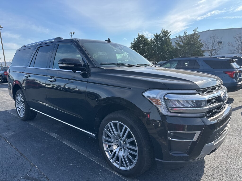 2023 Ford Expedition Max Limited 12 Speakers, 26mm Engine Radiator, 3.31 Axle Ratio, 3.73 Axle Ratio, 360-Degree Camera w/Split View, 360-Degree Camera w/Trailer Reverse Guidance, 3rd row seats: split-bench, 4-Wheel Disc Brakes, ABS brakes, Adjustable pedals, Air Conditioning, Alloy wheels, AM/FM radio: SiriusXM with 360L, Auto High-beam Headlights, Auto Start-Stop Removal (DISC), Auto-dimming door mirrors, Auto-dimming Rear-View mirror, Automatic temperature control, Brake assist, Bumpers: body-color, Compass, Connected Built-In Navigation, Cruise Control, Delay-off headlights, Driver door bin, Driver vanity mirror, Dual front impact airbags, Dual front side impact airbags, Ebony Black Mesh Grille, Electronic Stability Control, Emergency communication system: SYNC 4 911 Assist, Equipment Group 302A High Package, Four wheel independent suspension, Front anti-roll bar, Front Bucket Seats, Front Center Armrest, Front dual zone A/C, Front fog lights, Front reading lights, Fully automatic headlights, Garage door transmitter, Heated & Ventilated Leather Front Captain's Chairs, Heated and Cooled Seats, Heated door mirrors, Heated rear seats, Heated steering wheel, Heavy-Duty Independent Suspension, Heavy-Duty Trailer Tow Package, Illuminated entry, Integrated Trailer Brake Controller, Leather steering wheel, Low tire pressure warning, Magnetic-Painted Power Deployable Running Boards, Memory seat, Navigation system: Connected Navigation, Occupant sensing airbag, Outside temperature display, Overhead airbag, Overhead console, Panic alarm, Passenger door bin, Passenger vanity mirror, Pedal memory, Power door mirrors, Power driver seat, Power Liftgate, Power moonroof, Power passenger seat, Power steering, Power windows, Power-Folding Sideview Mirrors w/Autofold, Pro Trailer Backup Assist, Radio data system, Radio: B&O Sound System by Bang & Olufsen, Rain sensing wipers, Rear air conditioning, Rear anti-roll bar, Rear reading lights, Rear window defroster, Rear window wiper, Rearview Camera, Reclining 3rd row seat, Remote keyless entry, Reverse Brake Assist, Second Row Power Windows Removal, Security system, SiriusXM w/360L, Speed-sensing steering, Speed-Sensitive Wipers, Split folding rear seat, Spoiler, Steering wheel memory, Steering wheel mounted audio controls, SYNC 4 w/Enhanced Voice Recognition, Tachometer, Telescoping steering wheel, Tilt steering wheel, Traction control, Trip computer, Turn signal indicator mirrors, Variably intermittent wipers, Ventilated front seats, Voltmeter, Wheels: 20" Bright Machined Aluminum, Wheels: 22" 12-Spoke Polished Aluminum, (Must finance with Ford Motor Credit to receive online pricing - see dealer for details.) Proudly. Black Metallic 10-Speed Automatic Clean CARFAX. CARFAX One-Owner.