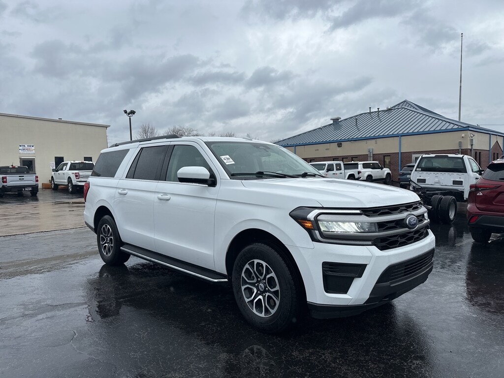 2023 Ford Expedition Max XLT 110V/150W AC Power Outlet, 18" Machined-Face Aluminum Wheels, 2nd Row Power-Folding 40/20/40 ActiveX Bench Seat, 2nd Row Power-Folding Captain's Chairs, 3.31 Axle Ratio, 3rd row seats: split-bench, 3rd Row Vinyl Power-Folding Head Restraints, 4-Door Intelligent Access (Lock/Unlock), 4-Wheel Disc Brakes, 6 Speakers, ABS brakes, Accent Color Painted Rear Bumper, ActiveX-Trimmed 1st & 2nd Row Seats, Advanced Security Pack, Air Conditioning, Alloy wheels, AM/FM radio: SiriusXM with 360L, Ambient Lighting, Auto High-beam Headlights, Auto Start-Stop Removal (DISC), Auto-dimming Rear-View mirror, Automatic temperature control, Brake assist, Bright Chrome Plated Accent Platform Running Boards, Bumpers: body-color, Cloth Front Captain's Chairs, Compass, Cruise Control, Delay-off headlights, Driver door bin, Driver vanity mirror, Dual front impact airbags, Dual front side impact airbags, Electronic Stability Control, Emergency communication system: SYNC 4 911 Assist, Equipment Group 202A High Package, Four wheel independent suspension, Front anti-roll bar, Front Bucket Seats, Front Center Armrest, Front dual zone A/C, Front reading lights, Fully automatic headlights, Garage door transmitter, Heated door mirrors, Heated Steering Wheel, Heated/Ventilated Front Seats, Illuminated entry, Leather steering wheel, Low tire pressure warning, Navigation system: Connected Navigation, Occupant sensing airbag, Outside temperature display, Overhead airbag, Overhead console, Panic alarm, Passenger door bin, Passenger vanity mirror, Power door mirrors, Power driver seat, Power Liftgate, Power steering, Power Tilt/Telescopic Steering Wheel w/Memory, Power windows, Power-Adjustable Pedals w/Memory, Power-Folding Sideview Mirrors w/Autofold, Radio data system, Radio: AM/FM Stereo w/MP3 Capable, Rear air conditioning, Rear anti-roll bar, Rear reading lights, Rear window defroster, Rear window wiper, Rearview Camera, Reclining 3rd row seat, Remote keyless entry, Remote Start, SecuriCode Keyless Entry Keypad, Security system, SiriusXM w/360L, Speed-sensing steering, Speed-Sensitive Wipers, Split folding rear seat, Spoiler, Steering wheel mounted audio controls, SYNC 4 w/Enhanced Voice Recognition, Tachometer, Telescoping steering wheel, Tilt steering wheel, Traction control, Trip computer, Variably intermittent wipers, Voltmeter, Wireless Charging Pad, (Must finance with Ford Motor Credit to receive online pricing - see dealer for details.) Proudly. Oxford White 10-Speed Automatic Clean CARFAX. CARFAX One-Owner.