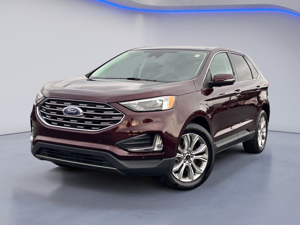 2024 Ford Edge Titanium Edge Titanium, 4D Sport Utility, EcoBoost 2.0L I4 GTDi DOHC Turbocharged VCT, 8-Speed Automatic, AWD, Burgundy, Ebony Premium Synthetic, Equipment Group 300A, 12 Speakers, 3.80 Axle Ratio, 4-Wheel Disc Brakes, ABS brakes, ActiveX-Trimmed Heated Sport Bucket Seats, Air Conditioning, Alloy wheels, AM/FM radio: SiriusXM with 360L, Auto High-beam Headlights, Auto-dimming Rear-View mirror, Automatic temperature control, Brake assist, Bumpers: body-color, Compass, Cruise Control, Delay-off headlights, Driver door bin, Driver vanity mirror, Dual front impact airbags, Dual front side impact airbags, Electronic Stability Control, Emergency communication system: SYNC 4 911 Assist, FordPass Connect, Four wheel independent suspension, Front anti-roll bar, Front Bucket Seats, Front Center Armrest w/Storage, Front dual zone A/C, Front fog lights, Front reading lights, Fully automatic headlights, Garage door transmitter, Heated and Cooled Seats, Heated door mirrors, Heated steering wheel, Illuminated entry, Knee airbag, Leather steering wheel, Low tire pressure warning, Memory seat, Occupant sensing airbag, Outside temperature display, Overhead airbag, Overhead console, Panic alarm, Passenger door bin, Passenger vanity mirror, Power door mirrors, Power driver seat, Power Liftgate, Power passenger seat, Power steering, Power windows, Radio: B&O Sound System by Bang & Olufsen, Rain sensing wipers, Rear anti-roll bar, Rear reading lights, Rear seat center armrest, Rear window defroster, Rear window wiper, Remote keyless entry, Security system, SiriusXM w/360L, Speed-Sensitive Wipers, Split folding rear seat, Spoiler, Steering wheel mounted audio controls, SYNC 4A w/Enhanced Voice Recognition, Tachometer, Telescoping steering wheel, Tilt steering wheel, Traction control, Trip computer, Turn signal indicator mirrors, Variably intermittent wipers, Wheels: 19 Luster Nickel-Painted Aluminum, (Must finance with Ford Motor Credit to receive online pricing - see dealer for details.) Proudly, Edge Titanium, 4D Sport Utility, EcoBoost 2.0L I4 GTDi DOHC Turbocharged VCT, 8-Speed Automatic, AWD, Burgundy, Ebony Premium Synthetic, Equipment Group 300A. Burgundy 8-Speed Automatic Clean CARFAX. CARFAX One-Owner.