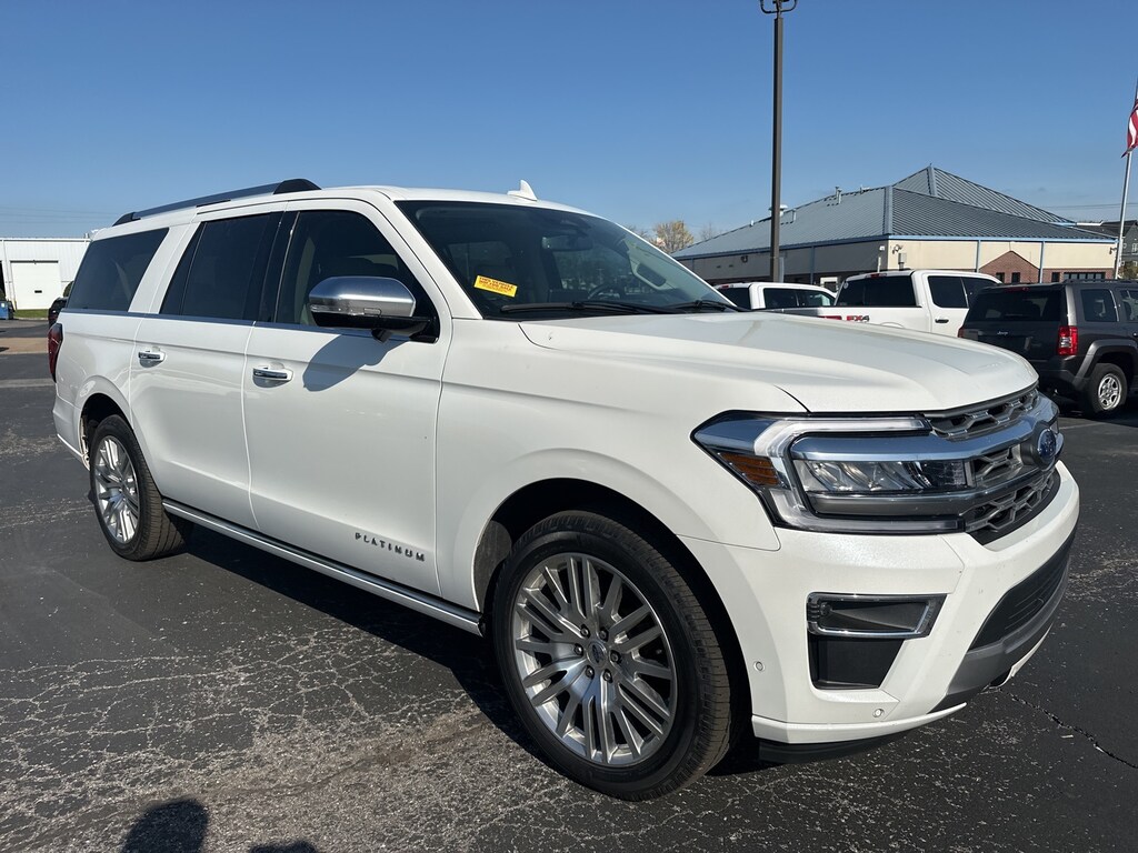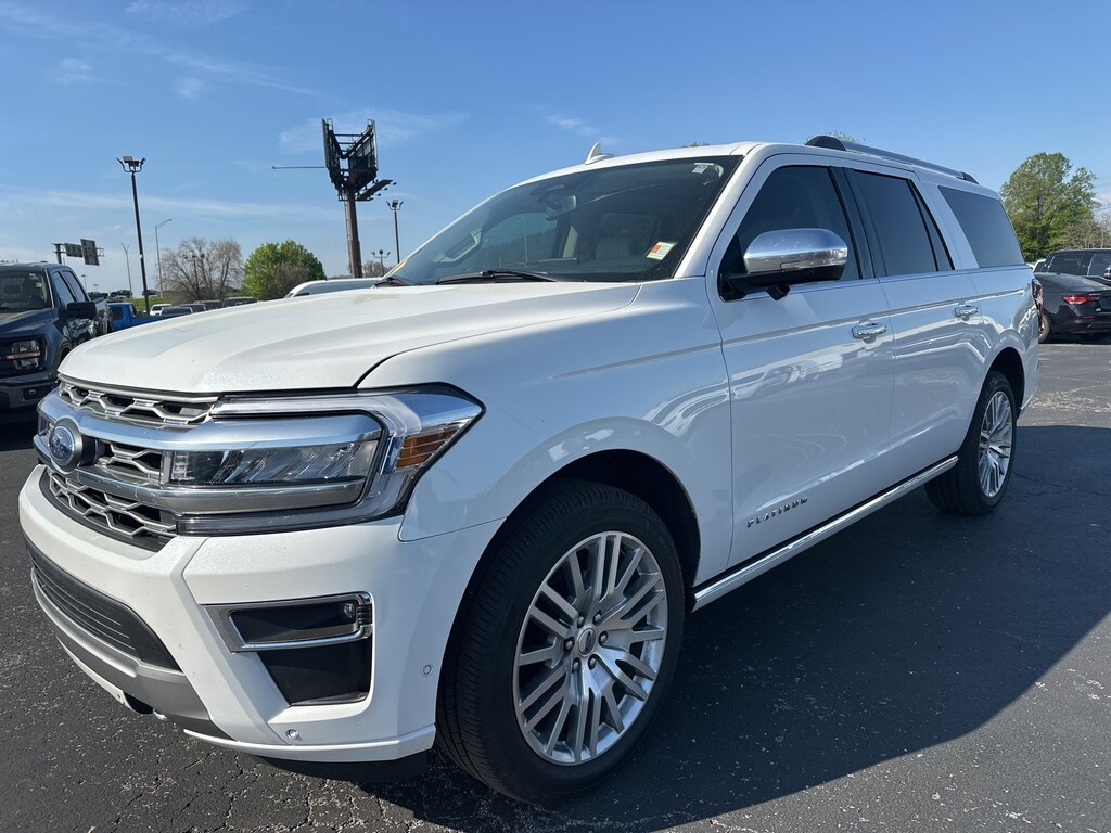 2024 Ford Expedition Max Platinum Expedition Max Platinum, 4D Sport Utility, EcoBoost 3.5L V6 GTDi DOHC 24V Twin Turbocharged, 10-Speed Automatic, 4WD, White Metallic, Light Sandstone Leather, 22 Speakers, 26mm Engine Radiator, 3.31 Axle Ratio, 3.73 Axle Ratio, 360-Degree Camera w/Trailer Reverse Guidance, 3rd row seats: split-bench, 4-Wheel Disc Brakes, ABS brakes, Adaptive suspension, Adjustable pedals, Air Conditioning, Alloy wheels, AM/FM radio: SiriusXM with 360L, Auto High-beam Headlights, Auto-dimming door mirrors, Auto-dimming Rear-View mirror, Automatic temperature control, Brake assist, Bumpers: body-color, Compass, ControlTrac w/3.73 Axle Ratio, Cruise Control, Delay-off headlights, Driver door bin, Driver vanity mirror, Dual front impact airbags, Dual front side impact airbags, Electronic Stability Control, Emergency communication system: SYNC 4 911 Assist, Equipment Group 600A Standard Package, Four wheel independent suspension, Front anti-roll bar, Front Bucket Seats, Front Center Armrest, Front dual zone A/C, Front fog lights, Front License Plate Bracket, Front reading lights, Front Tow Hooks, Fully automatic headlights, Garage door transmitter, Genuine wood console insert, Genuine wood dashboard insert, Genuine wood door panel insert, Heated and Cooled Seats, Heated door mirrors, Heated rear seats, Heated steering wheel, Heated/Ventilated Prem Lthr Front Captain's Chairs, Heavy-Duty Trailer Tow Package, Illuminated entry, Integrated Trailer Brake Controller, Leather steering wheel, Low tire pressure warning, Memory seat, Navigation system: Connected Navigation, Occupant sensing airbag, Outside temperature display, Overhead airbag, Overhead console, Panic alarm, Passenger door bin, Passenger vanity mirror, Pedal memory, Power door mirrors, Power driver seat, Power Liftgate, Power moonroof, Power passenger seat, Power steering, Power windows, Pro Trailer Backup Assist, Radio data system, Radio: B&O Unleashed Sound System by Bang & Olufsen, Rain sensing wipers, Rear air conditioning, Rear anti-roll bar, Rear audio controls, Rear reading lights, Rear window defroster, Rear window wiper, Rearview Camera, Reclining 3rd row seat, Remote keyless entry, Security system, SiriusXM w/360L, Speed-sensing steering, Speed-Sensitive Wipers, Split folding rear seat, Spoiler, Steering wheel memory, Steering wheel mounted audio controls, SYNC 4 w/Enhanced Voice Recognition, Tachometer, Telescoping steering wheel, Tilt steering wheel, Traction control, Trip computer, Turn signal indicator mirrors, Variably intermittent wipers, Ventilated front seats, Voltmeter, Wheels: 22" 12-Spoke Polished Aluminum, (Must finance with Ford Motor Credit to receive online pricing - see dealer for details.) Proudly, Expedition Max Platinum, 4D Sport Utility, EcoBoost 3.5L V6 GTDi DOHC 24V Twin Turbocharged, 10-Speed Automatic, 4WD, White Metallic, Light Sandstone Leather. White Metallic 10-Speed Automatic CARFAX One-Owner.