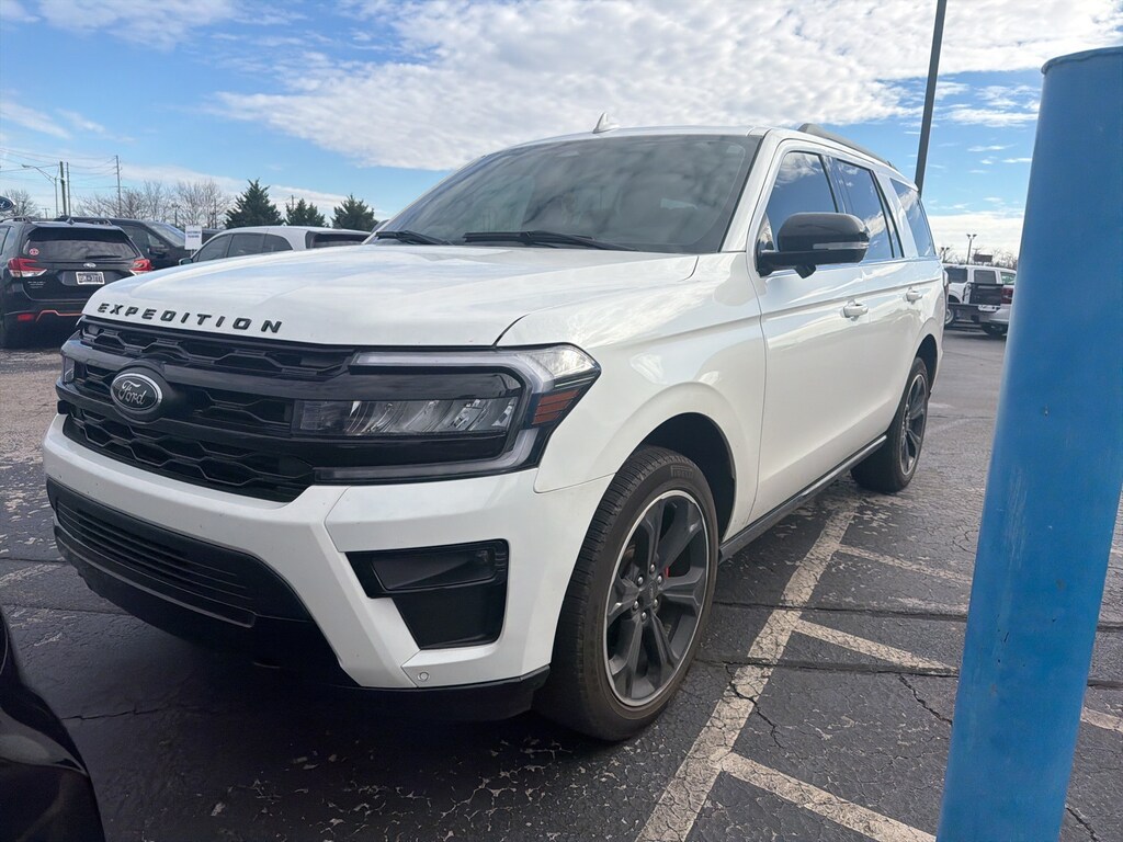 2024 Ford Expedition Limited Expedition Limited, 4D Sport Utility, 3.5L V6, 10-Speed Automatic, 4WD, 12 Speakers, 3.31 Axle Ratio, 3rd row seats: split-bench, 4-Wheel Disc Brakes, ABS brakes, Adjustable pedals, Alloy wheels, Auto High-beam Headlights, Auto-dimming door mirrors, Auto-dimming Rear-View mirror, Brake assist, Bumpers: body-color, Compass, Cruise Control, Delay-off headlights, Driver door bin, Driver vanity mirror, Dual front impact airbags, Dual front side impact airbags, Electronic Stability Control, Emergency communication system: SYNC 4 911 Assist, Four wheel independent suspension, Front anti-roll bar, Front Bucket Seats, Front Center Armrest, Front fog lights, Front reading lights, Fully automatic headlights, Garage door transmitter, Heated & Ventilated Leather Front Captain's Chairs, Heated and Cooled Seats, Heated door mirrors, Heated rear seats, Low tire pressure warning, Navigation system: Connected Navigation, Occupant sensing airbag, Overhead airbag, Panic alarm, Passenger door bin, Power door mirrors, Power Liftgate, Power moonroof, Power passenger seat, Rain sensing wipers, Rear anti-roll bar, Rear window wiper, Rearview Camera, Reclining 3rd row seat, Security system, Speed-sensing steering, Speed-Sensitive Wipers, Split folding rear seat, Spoiler, Traction control, Turn signal indicator mirrors, Variably intermittent wipers, Ventilated front seats, Wheels: 20" Bright Machined Aluminum, Air Conditioning, AM/FM radio: SiriusXM with 360L, Automatic temperature control, Front dual zone A/C, Heated steering wheel, Illuminated entry, Leather steering wheel, Memory seat, Outside temperature display, Overhead console, Passenger vanity mirror, Pedal memory, Power driver seat, Power steering, Power windows, Radio data system, Radio: B&O Sound System by Bang & Olufsen, Rear air conditioning, Rear reading lights, Rear window defroster, Remote keyless entry, SiriusXM w/360L, Steering wheel memory, Steering wheel mounted audio controls, SYNC 4 w/Enhanced Voice Recognition, Tachometer, Telescoping steering wheel, Tilt steering wheel, Trip computer, Voltmeter, (Must finance with Ford Motor Credit to receive online pricing - see dealer for details.) Proudly, Expedition Limited, 4D Sport Utility, 3.5L V6, 10-Speed Automatic, 4WD, 12 Speakers, 3.31 Axle Ratio, 3rd row seats: split-bench, 4-Wheel Disc Brakes, ABS brakes, Adjustable pedals, Alloy wheels, Auto High-beam Headlights, Auto-dimming door mirrors, Auto-dimming Rear-View mirror, Brake assist, Bumpers: body-color, Compass, Cruise Control, Delay-off headlights, Driver door bin, Driver vanity mirror, Dual front impact airbags, Dual front side impact airbags, Electronic Stability Control, Emergency communication system: SYNC 4 911 Assist, Four wheel independent suspension, Front anti-roll bar, Front Bucket Seats, Front Center Armrest, Front fog lights, Front reading lights, Fully automatic headlights, Garage door transmitter, Heated & Ventilated Leather Front Captain's Chairs, Heated and Cooled Seats, Heated door mirrors, Heated rear seats, Low tire pressure warning, Navigation system: Connected Navigation, Occupant sensing airbag, Overhead airbag, Panic alarm, Passenger door bin, Power door mirrors, Power Liftgate, Power moonroof, Power passenger seat, Rain sensing wipers, Rear anti-roll bar, Rear window wiper, Rearview Camera, Reclining 3rd row seat, Security system, Speed-sensing steering, Speed-Sensitive Wipers, Split folding rear seat, Spoiler, Traction control, Turn signal indicator mirrors, Variably intermittent wipers, Ventilated front seats, Wheels: 20" Bright Machined Aluminum. White Metallic 10-Speed Automatic Clean CARFAX. CARFAX One-Owner.