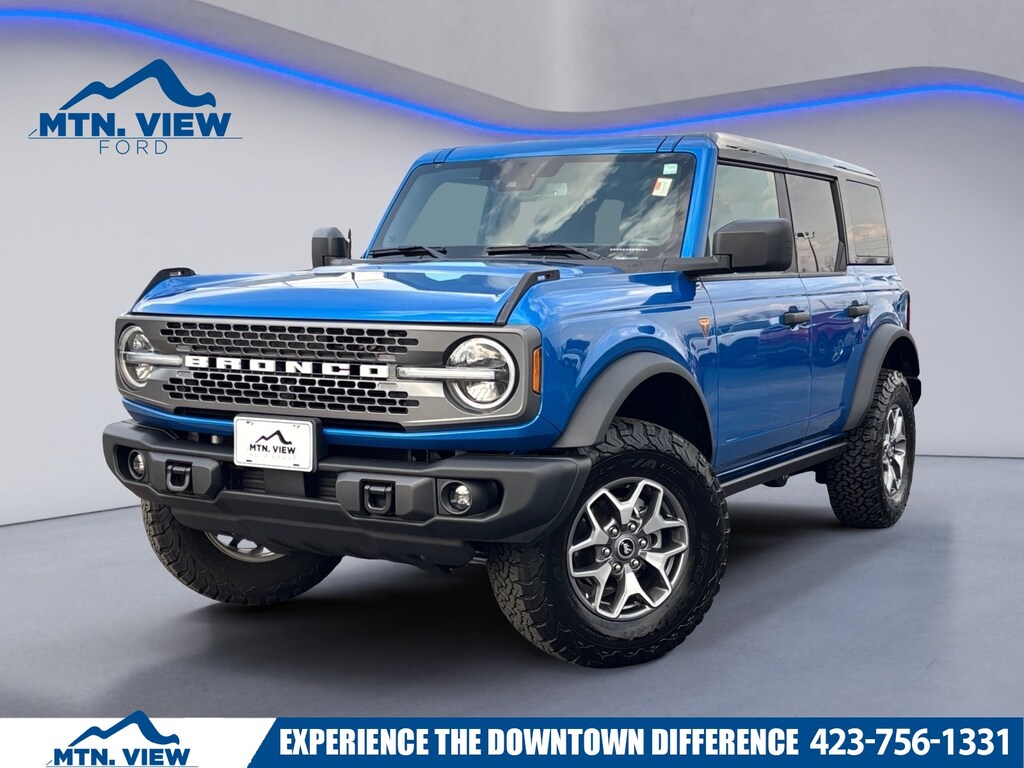 2025 Ford Bronco Badlands 2-Door Intelligent Access w/Lock/Unlock, 4-Wheel Disc Brakes, 4.7 Axle Ratio, 7 Speakers, ABS brakes, Air Conditioning, Alloy wheels, AM/FM radio: SiriusXM with 360L, AM/FM Stereo, Ambient Footwell Lighting, Auto High-Beam Headlamps, Auto High-beam Headlights, Auto-dimming Rear-View mirror, BLIS Blind Spot Information System, Brake assist, Compass, Connected Navigation, Cruise Control, Delay-off headlights, Dr & Pass Illuminated Sliding Visor Vanity Mirrors, Driver door bin, Driver vanity mirror, Dual front impact airbags, Dual front side impact airbags, Dual Smart Charging USB Ports, Dual-Zone Electronic Automatic Temperature Control, Electronic Stability Control, Emergency communication system: 911 Assist, Equipment Group 332A Mid Package, Front anti-roll bar, Front Bucket Seats, Front Center Armrest, Front fog lights, Front License Plate Bracket, Front reading lights, Front Row Heated Seats, Front wheel independent suspension, Fully automatic headlights, Hard Top Sound Deadening Headliner, Heated and Cooled Seats, Heated door mirrors, Heated steering wheel, Illuminated entry, Integrated roll-over protection, Internet access capable: FordPass Connect, Lane-Keeping System, Leather Shift Knob, Low tire pressure warning, Marine Grade Vinyl Heated Bucket Seats, Occupant sensing airbag, Outside temperature display, Overhead airbag, Overhead console, Panic alarm, Passenger door bin, Passenger vanity mirror, Power door mirrors, Power Outlet - Back Side of Center Floor Console, Power steering, Power windows, Pre-Collision Assist w/Automatic Emergency Braking, Radio data system, Rear Parking Sensors, Rear-View Camera, Rear-Window Defroster & Washer, Rearview Camera, Remote keyless entry, Security system, Shadow Black Painted Hard Top, SiriusXM w/360L, Split folding rear seat, Steering wheel mounted audio controls, SYNC 4, Tachometer, Telescoping steering wheel, Tilt steering wheel, Traction control, Trip computer, Variably intermittent wipers, Voltmeter, Wheels: 17" Carbonized Gray-Painted Aluminum, (Must finance with Ford Motor Credit to receive online pricing - see dealer for details.) Proudly. Blue Metallic 10-Speed Automatic Clean CARFAX. CARFAX One-Owner.