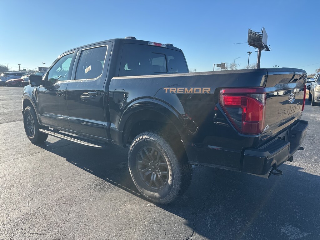 2025 Ford F-150 Tremor F-150 Tremor, 4D SuperCrew, 5.0L V8, 10-Speed Automatic, 4WD, Black Metallic, Black Cloth, 4-Wheel Disc Brakes, 8 Speakers, ABS brakes, Adjustable pedals, Air Conditioning, Alloy wheels, AM/FM radio: SiriusXM with 360L, Auto High-beam Headlights, Auto-dimming door mirrors, Auto-dimming Rear-View mirror, Automatic temperature control, Brake assist, Bumpers: body-color, Compass, Console Worksurface, Cruise Control, Delay-off headlights, Driver door bin, Driver vanity mirror, Dual front impact airbags, Dual front side impact airbags, Electronic Locking w/3.73 Axle Ratio, Electronic Stability Control, Emergency communication system: SYNC 4 911 Assist, Equipment Group 401A Standard, Front anti-roll bar, Front Bucket Seats, Front Center Armrest, Front dual zone A/C, Front fog lights, Front License Plate Bracket, Front reading lights, Front wheel independent suspension, Fully automatic headlights, GVWR: 7,100 lbs Payload Package, Heated and Cooled Seats, Heated door mirrors, Illuminated entry, Internet access capable: FordPass Connect 5G, Low tire pressure warning, Mobile Office Package, Navigation system: Connected Navigation, Occupant sensing airbag, Outside temperature display, Overhead airbag, Overhead console, Panic alarm, Partitioned Lockable Rear Storage, Passenger door bin, Passenger vanity mirror, Power door mirrors, Power driver seat, Power passenger seat, Power steering, Power windows, Radio data system, Radio: B&O Sound System by Bang & Olufsen, Rear reading lights, Rear step bumper, Rear window defroster, Remote keyless entry, Security system, Split folding rear seat, Steering wheel mounted audio controls, SYNC 4 w/Enhanced Voice Recognition, Tachometer, Telescoping steering wheel, Tilt steering wheel, Traction control, Trip computer, Turn signal indicator mirrors, Unique Sport Cloth 40/Console/40 Power Front Seat, Variably intermittent wipers, Voltmeter, Wheels: 18" Alloy w/Dark Matte Finish, Wireless Charging, (Must finance with Ford Motor Credit to receive online pricing - see dealer for details.) Proudly, F-150 Tremor, 4D SuperCrew, 5.0L V8, 10-Speed Automatic, 4WD, Black Metallic, Black Cloth. Black Metallic 10-Speed Automatic Clean CARFAX. CARFAX One-Owner.