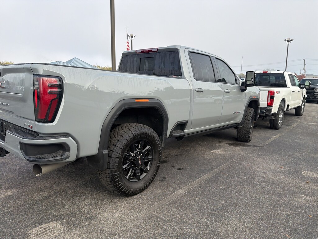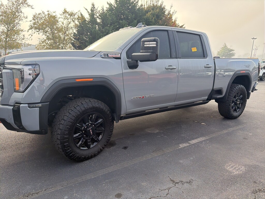 2025 GMC Sierra 2500HD AT4 Sierra 2500HD AAT4, 4D Crew Cab, Duramax 6.6L V8 Turbodiesel, 10-Speed Automatic, 4WD, Gray, Jet Black With Kalahari Accents Leather, 120-Volt Bed Mounted Power Outlet, 120-Volt Instrument Panel Power Outlet, 2 Charge-Only Rear USB Ports, 2 Charge/Data USB Ports Inside Center Console, 2 USB Ports, 2-Speed Active Transfer Case, AT4 Preferred Package, AT4 Premium Plus Package, Bed View Camera w/2 Trailer Camera Provisions, Bose Premium 7-Speaker Sound System, Deep-Tinted Glass, Electric Rear-Window Defogger, Floor-Mounted Center Console, Front Prem Floor Liners w/Removable Carpet Insert, Front Rain-Sensing Wipers, Gloss Black Header Grille & Grille Insert Bars, Gooseneck/5th Wheel Prep Package, HD Surround Vision, Heated 2nd Row Outboard Seats, Heated Driver & Front Outboard Passenger Seats, Hill Descent Control, Inside Rearview Auto-Dimming Rear Camera Mirror, Keyless Open & Start, LED Cargo Area Lighting, LED Smoked Amber Roof Marker Lamps, Manual Tilt-Wheel/Telescoping Steering Column, Multicolor 15" Diagonal Head-Up Display, Off-Road High Clearance Step (LPO), OnStar Services Capable, Power Front Passenger Windows w/Express Up/Down, Power Sliding Rear Window w/Defogger, Power Sunroof, Preferred Equipment Group 4SB, Push Button Start, Rear Cross Traffic Alert, Rear Prem Floor Liners w/Removable Carpet Insert, Rear Wheelhouse Liners, Remote Vehicle Starter System, Safety Alert Seat, SiriusXM w/360L Trial Subscription, Spray-On Pickup Bedliner w/GMC Logo, Steering Wheel Audio Controls, Technology Package, Trailer Cam Provisions & Trailer Viewing Software, Trailer Side Blind Zone Alert, Ultrasonic Front & Rear Park Assist, Unauthorized Entry Theft-Deterrent System, Universal Home Remote, Ventilated Driver & Front Passenger Seats, Wireless Charging, Wireless Phone Projection, X31 Off-Road Package, 10-Way Power Driver Seat Adjuster w/Lumbar, 10-Way Power Passenger Seat Adjuster w/Lumbar, 220-Amp Alternator, 3.42 Axle Ratio, 3.73 Rear Axle Ratio, 4-Wheel Disc Brakes, 7 Speakers, ABS brakes, Air Conditioning, Alloy wheels, AM/FM radio: SiriusXM with 360L, Apple CarPlay/Android Auto, Auto High-beam Headlights, Auto-dimming door mirrors, Auto-dimming Rear-View mirror, Automatic Emergency Braking, Automatic temperature control, Brake assist, Buckle to Drive, Bumpers: body-color, Compass, Cruise Control, Delay-off headlights, Driver door bin, Driver Memory, Driver vanity mirror, Dual front impact airbags, Dual front side impact airbags, Electronic Stability Control, Emergency communication system: OnStar, Engine Block Heater, Exhaust Brake, Following Distance Indicator, Forward Collision Alert, Front anti-roll bar, Front Bucket Seats, Front Center Armrest, Front dual zone A/C, Front fog lights, Front Pedestrian Braking, Front reading lights, Front wheel independent suspension, Fully automatic headlights, Heated and Cooled Seats, Heated door mirrors, Heated rear seats, Heated steering wheel, Heavy-Duty 80 Amp Battery, Hitch Guidance w/Hitch View, Illuminated entry, In-Vehicle Trailering System App, IntelliBeam Automatic High Beam On/Off, Lane Departure Warning System, Low tire pressure warning, Memory seat, Occupant sensing airbag, Off-Road Suspension, Outside temperature display, Overhead airbag, Overhead console, Panic alarm, Passenger door bin, Passenger vanity mirror, Perforated Leather-Appointed Front Seat Trim, Pickup Box, Power door mirrors, Power driver seat, Power passenger seat, Power steering, Power windows, Power-Retractable Black Assist Steps, Radio: AM/FM w/Premium GMC Infotainment System, Rain sensing wipers, Rear reading lights, Rear seat center armrest, Rear step bumper, Rear window defroster, Remote keyless entry, Security system, Speed-sensing steering, Split folding rear seat, Steering wheel mounted audio controls, Tachometer, Telescoping steering wheel, Tilt steering wheel, Traction control, Trip computer, Turn signal indicator mirrors, Variably intermittent wipers, Ventilated front seats,