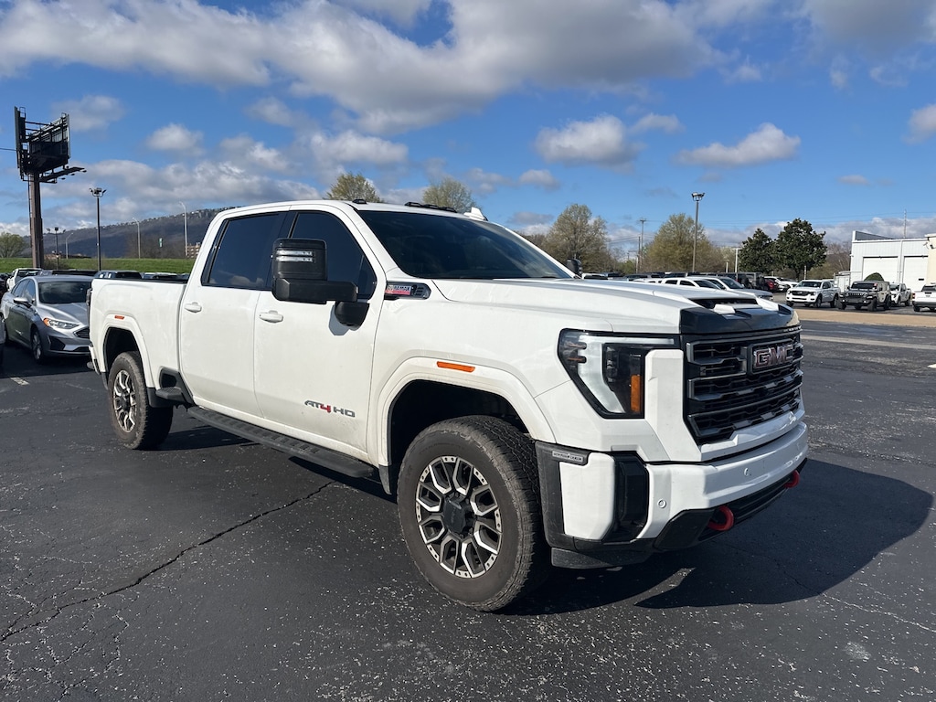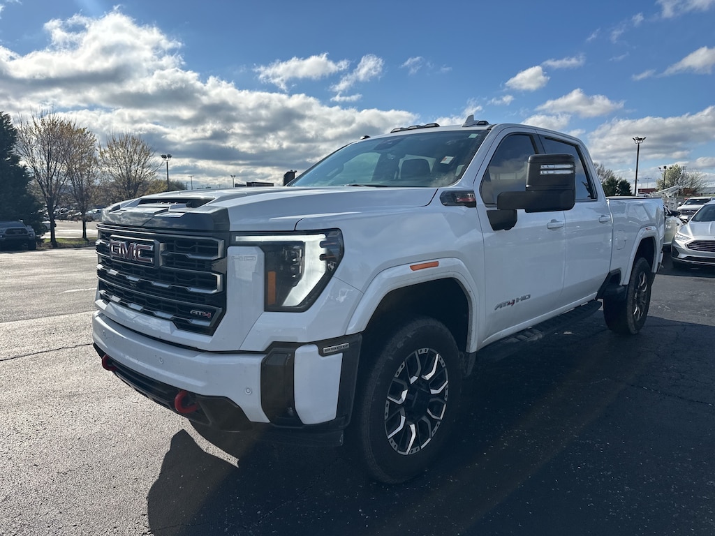 2025 GMC Sierra 2500HD AT4 Sierra 2500HD AAT4, 4D Crew Cab, Duramax 6.6L V8 Turbodiesel, 10-Speed Automatic, 4WD, Summit White, Jet Black With Kalahari Accents Leather, 10-Way Power Driver Seat Adjuster w/Lumbar, 10-Way Power Passenger Seat Adjuster w/Lumbar, 120-Volt Bed Mounted Power Outlet, 120-Volt Instrument Panel Power Outlet, 2 Charge-Only Rear USB Ports, 2 Charge/Data USB Ports Inside Center Console, 2 USB Ports, 2-Speed Active Transfer Case, 220-Amp Alternator, 3 Years SiriusXM, 4-Wheel Disc Brakes, 7 Speakers, ABS brakes, Air Conditioning, Alloy wheels, AM/FM radio: SiriusXM with 360L, Apple CarPlay/Android Auto, AT4 Preferred Package, AT4 Premium Plus Package, Auto High-beam Headlights, Auto-dimming door mirrors, Auto-dimming Rear-View mirror, Automatic Emergency Braking, Automatic temperature control, Bed View Camera w/2 Trailer Camera Provisions, Body Color Wheel Arch Moldings (LPO), Bose Premium 7-Speaker Sound System, Brake assist, Buckle to Drive, Bumpers: body-color, Compass, Cruise Control, Deep-Tinted Glass, Delay-off headlights, Driver door bin, Driver Memory, Driver vanity mirror, Dual front impact airbags, Dual front side impact airbags, Electric Rear-Window Defogger, Electronic Stability Control, Emergency communication system: OnStar, Engine Block Heater, Exhaust Brake, Floor-Mounted Center Console, Following Distance Indicator, Forward Collision Alert, Front anti-roll bar, Front Bucket Seats, Front Center Armrest, Front dual zone A/C, Front fog lights, Front Pedestrian Braking, Front Prem Floor Liners w/Removable Carpet Insert, Front Rain-Sensing Wipers, Front reading lights, Front wheel independent suspension, Fully automatic headlights, Gloss Black Header Grille & Grille Insert Bars, Gooseneck/5th Wheel Prep Package, HD Surround Vision, Heated 2nd Row Outboard Seats, Heated and Cooled Seats, Heated door mirrors, Heated Driver & Front Outboard Passenger Seats, Heated rear seats, Heated steering wheel, Heavy-Duty 80 Amp Battery, Hill Descent Control, Hitch Guidance w/Hitch View, Illuminated entry, In-Vehicle Trailering System App, Inside Rearview Auto-Dimming Rear Camera Mirror, IntelliBeam Automatic High Beam On/Off, Keyless Open & Start, Lane Departure Warning System, LED Cargo Area Lighting, LED Smoked Amber Roof Marker Lamps, Low tire pressure warning, Manual Tilt-Wheel/Telescoping Steering Column, Max Trailering Package, Memory seat, Multicolor 15" Diagonal Head-Up Display, Occupant sensing airbag, Off-Road High Clearance Step (LPO), Off-Road Suspension, OnStar Services Capable, Outside temperature display, Overhead airbag, Overhead console, Panic alarm, Passenger door bin, Passenger vanity mirror, Perforated Leather-Appointed Front Seat Trim, Pickup Box, Power door mirrors, Power driver seat, Power Front Passenger Windows w/Express Up/Down, Power passenger seat, Power Sliding Rear Window w/Defogger, Power steering, Power Sunroof, Power windows, Preferred Equipment Group 4SB, Push Button Start, Radio: AM/FM w/Premium GMC Infotainment System, Rain sensing wipers, Rear Cross Traffic Alert, Rear Prem Floor Liners w/Removable Carpet Insert, Rear reading lights, Rear seat center armrest, Rear step bumper, Rear Wheelhouse Liners, Rear window defroster, Remote keyless entry, Remote Vehicle Starter System, Safety Alert Seat, Security system, SiriusXM w/360L Trial Subscription, Speed-sensing steering, Split folding rear seat, Sport Pedal Cover Kit (LPO), Spray-On Pickup Bedliner w/GMC Logo, Steering Wheel Audio Controls, Steering wheel mounted audio controls, Tachometer, Technology Package, Telescoping steering wheel, Tilt steering wheel, Traction control, Trailer Cam Provisions & Trailer Viewing Software, Trailer Side Blind Zone Alert, Trip computer, Turn signal indicator mirrors, Ultrasonic Front & Rear Park Assist, Unauthorized Entry Theft-Deterrent System, Universal Home Remote, Variably intermittent wipers, Ventilated Driver & Front Passenger Seats, Ventilated front seats, Voltmeter, Wheels: 20" High
