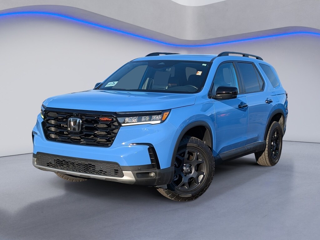 2025 Honda Pilot TrailSport Pilot TrailSport, 4D Sport Utility, 3.5L V6 DOHC 24V, 10-Speed Automatic, AWD, Blue, 3rd row seats: split-bench, 4-Wheel Disc Brakes, 4.167 Axle Ratio, 9 Speakers, ABS brakes, Adaptive Cruise Control: Adaptive Cruise Control (ACC) with Low-Speed Follow, Air Conditioning, Alloy wheels, AM/FM radio: SiriusXM, Apple CarPlay/Android Auto, Auto High-beam Headlights, Auto-dimming Rear-View mirror, Automatic temperature control, Blind Spot Information (BSI) System warning, Brake assist, Bumpers: body-color, Cruise Control, Delay-off headlights, Driver door bin, Driver vanity mirror, Dual front impact airbags, Dual front side impact airbags, Durable Synthetic Leather Seat Trim, Electronic Stability Control, Emergency communication system: HondaLink Assist, Four wheel independent suspension, Front anti-roll bar, Front Bucket Seats, Front Center Armrest, Front dual zone A/C, Front fog lights, Front reading lights, Fully automatic headlights, Garage door transmitter: HomeLink, Heated and Cooled Seats, Heated door mirrors, Heated Front Bucket Seats, Illuminated entry, Knee airbag, Lane departure: Lane Keeping Assist System (LKAS) active, Low tire pressure warning, Memory seat, Occupant sensing airbag, Outside temperature display, Overhead airbag, Overhead console, Panic alarm, Passenger door bin, Passenger vanity mirror, Power door mirrors, Power driver seat, Power Liftgate, Power moonroof, Power passenger seat, Power steering, Power windows, Radio data system, Radio: 245-Watt Audio System, Rear air conditioning, Rear anti-roll bar, Rear reading lights, Rear window defroster, Rear window wiper, Rearview Camera, Reclining 3rd row seat, Remote keyless entry, Security system, SiriusXM, Speed-sensing steering, Speed-Sensitive Wipers, Split folding rear seat, Spoiler, Steering wheel mounted audio controls, Tachometer, Telescoping steering wheel, Tilt steering wheel, Traction control, Trip computer, Turn signal indicator mirrors, Variably intermittent wipers, Wheels: 18" Shark Gray with Black Lug Nuts, (Must finance with Ford Motor Credit to receive online pricing - see dealer for details.) Proudly, Pilot TrailSport, 4D Sport Utility, 3.5L V6 DOHC 24V, 10-Speed Automatic, AWD, Blue. Blue 10-Speed Automatic CARFAX One-Owner.