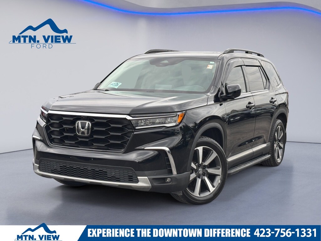 2025 Honda Pilot Elite AWD, 12 Speakers, 3rd row seats: split-bench, 4-Wheel Disc Brakes, 4.167 Axle Ratio, ABS brakes, Adaptive Cruise Control: Adaptive Cruise Control (ACC) with Low-Speed Follow, Air Conditioning, Alloy wheels, AM/FM radio: SiriusXM, Apple CarPlay/Android Auto, Auto High-beam Headlights, Auto-dimming door mirrors, Auto-dimming Rear-View mirror, Automatic temperature control, Blind Spot Information (BSI) System warning, Bose Premium Sound System, Brake assist, Bumpers: body-color, Compass, Cruise Control, Delay-off headlights, Driver door bin, Driver vanity mirror, Dual front impact airbags, Dual front side impact airbags, Electronic Stability Control, Emergency communication system: HondaLink, Four wheel independent suspension, Front anti-roll bar, Front Bucket Seats, Front Center Armrest, Front dual zone A/C, Front fog lights, Front reading lights, Fully automatic headlights, Garage door transmitter: HomeLink, Heads-Up Display, Heated and Cooled Seats, Heated and Ventilated Front Bucket Seats, Heated door mirrors, Heated rear seats, Heated steering wheel, Honda Satellite-Linked Navigation System, HondaLink Subscription Services, Illuminated entry, Knee airbag, Lane departure: Lane Keeping Assist System (LKAS) active, Low tire pressure warning, Memory seat, Navigation system: Honda Satellite-Linked Navigation System, Occupant sensing airbag, Outside temperature display, Overhead airbag, Overhead console, Panic alarm, Passenger door bin, Passenger vanity mirror, Perforated Leather Seat Trim, Power door mirrors, Power driver seat, Power Liftgate, Power moonroof, Power passenger seat, Power steering, Power windows, Radio data system, Rain sensing wipers, Rear air conditioning, Rear anti-roll bar, Rear reading lights, Rear seat center armrest, Rear window defroster, Rear window wiper, Rearview Camera, Reclining 3rd row seat, Remote keyless entry, Security system, SiriusXM, Speed-sensing steering, Speed-Sensitive Wipers, Split folding rear seat, Spoiler, Steering wheel mounted audio controls, Tachometer, Telescoping steering wheel, Tilt steering wheel, Traction control, Trip computer, Turn signal indicator mirrors, Variably intermittent wipers, Ventilated front seats, Wheels: 20" Shark Gray Machine Face with Black Lug Nuts, (Must finance with Ford Motor Credit to receive online pricing - see dealer for details.) Proudly, AWD. Black 10-Speed Automatic CARFAX One-Owner.
