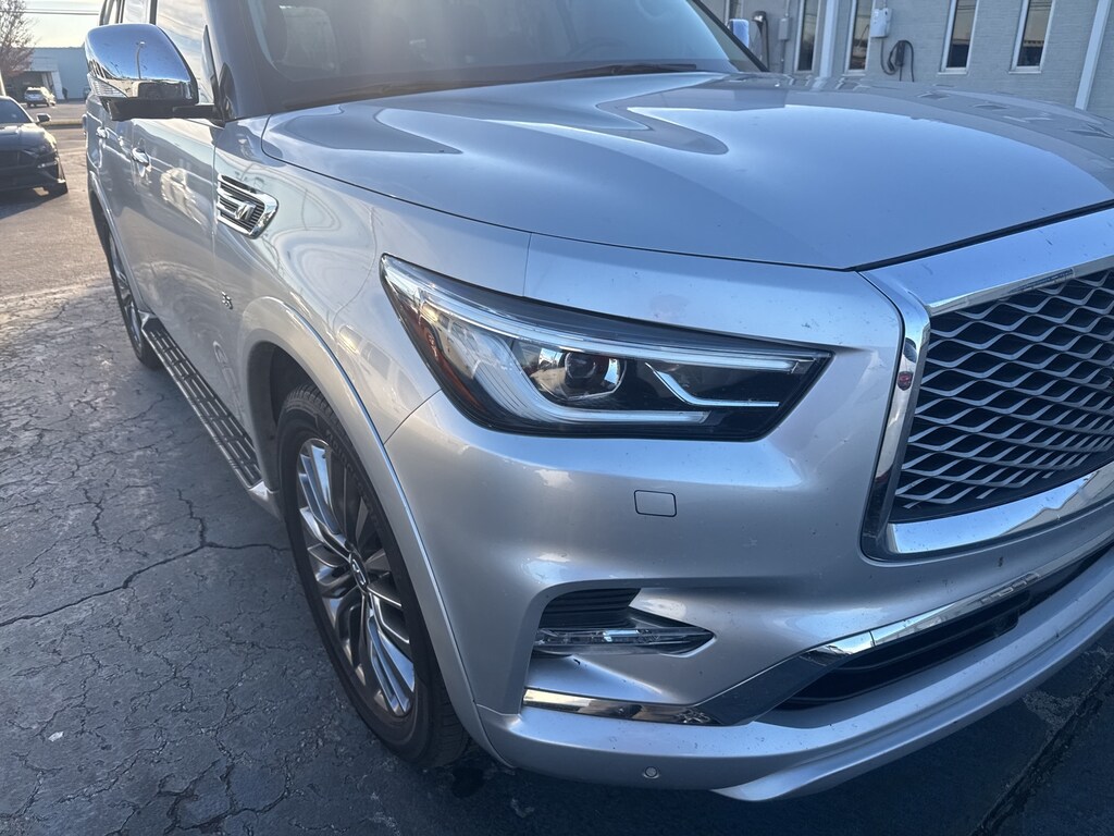 2020 INFINITI QX80 LUXE QX80 LUXE, 4D Sport Utility, 5.6L V8, 7-Speed Automatic, RWD, Liquid Platinum, Graphite Leather, 22" Wheel Package, Adaptive Front Lighting System, Advanced Climate Control System, Blind Spot Intervention (BSI), Bose Performance Series Audio w/17 Speakers, Cargo Package, Charcoal Burl Trim w/Gradient Finish, Chrome Outside Mirror Caps, Climate-Controlled Front Seats, First-Aid Kit, Front Pre-Crash Seatbelts, Headlight Washers, Heated 2nd-Row Seats, High-Density Non-Slip Rear Cargo Carpet, Hydraulic Body Motion Control System, Intelligent Cruise Control, Lane Departure Prevention (LDP), Navigation system: INFINITI InTouch Navigation, Nylon-Cord Cargo Net, ProACTIVE Package, ProASSIST Package, Semi-Aniline Leather-Appointed Seating w/Quilting, Sensory Package, Smart Rear View Mirror, Vehicle Speed-Sensitive Power Steering, Wheels: 22" x 8.0" 14-Spoke Forged Aluminum-Alloy, 120V Power Outlet, 13 Speakers, 2.937 Axle Ratio, 3rd row seats: split-bench, 4-Wheel Disc Brakes, ABS brakes, Air Conditioning, Alloy wheels, AM/FM radio: SiriusXM, Anti-whiplash front head restraints, Apple CarPlay/Android Auto, Auto High-beam Headlights, Auto tilt-away steering wheel, Auto-dimming door mirrors, Auto-dimming Rear-View mirror, Auto-leveling suspension, Automatic temperature control, Blind Spot Warning, Brake assist, Bumpers: body-color, CD player, Compass, Cruise Control, Delay-off headlights, Driver door bin, Driver vanity mirror, Dual 8" Color Monitors, Dual front impact airbags, Dual front side impact airbags, DVD-Audio, Electronic Stability Control, Emergency communication system: INFINITI Connection, Four wheel independent suspension, Front anti-roll bar, Front Bucket Seats, Front Center Armrest, Front dual zone A/C, Front fog lights, Front reading lights, Fully automatic headlights, Garage door transmitter: HomeLink, Heated and Cooled Seats, Heated door mirrors, Heated Front Bucket Seats, Heated steering wheel, Illuminated entry, Leather Shift Knob, Leather steering wheel, Leather-Appointed Seats, Literature Kit, Low tire pressure warning, Memory seat, Occupant sensing airbag, Outside temperature display, Overhead airbag, Overhead console, Panic alarm, Passenger door bin, Passenger vanity mirror, Power door mirrors, Power driver seat, Power Liftgate, Power moonroof, Power passenger seat, Power steering, Power windows, Radiant Illuminated Kick Plates, Radio data system, Radio: AM/FM/HD w/Single In-Dash CD Player & MP3, Rain sensing wipers, Rear air conditioning, Rear anti-roll bar, Rear audio controls, Rear reading lights, Rear seat center armrest, Rear window defroster, Rear window wiper, Reclining 3rd row seat, Remote keyless entry, Roof Rail Cross Bars, Security system, Speed-sensing steering, Split folding rear seat, Spoiler, Steering wheel memory, Steering wheel mounted audio controls, Tachometer, Telescoping steering wheel, Theater Package, Tilt steering wheel, Traction control, Trip computer, Turn signal indicator mirrors, Variably intermittent wipers, Voltmeter, Wheels: 20" x 8.0" Aluminum-Alloy, Wireless Headphones (2), (Must finance with Ford Motor Credit to receive online pricing - see dealer for details.) Proudly, QX80 LUXE, 4D Sport Utility, 5.6L V8, 7-Speed Automatic, RWD, Liquid Platinum, Graphite Leather, 22" Wheel Package, Adaptive Front Lighting System, Advanced Climate Control System, Blind Spot Intervention (BSI), Bose Performance Series Audio w/17 Speakers, Cargo Package, Charcoal Burl Trim w/Gradient Finish, Chrome Outside Mirror Caps, Climate-Controlled Front Seats, First-Aid Kit, Front Pre-Crash Seatbelts, Headlight Washers, Heated 2nd-Row Seats, High-Density Non-Slip Rear Cargo Carpet, Hydraulic Body Motion Control System, Intelligent Cruise Control, Lane Departure Prevention (LDP), Navigation system: INFINITI InTouch Navigation, Nylon-Cord Cargo Net, ProACTIVE Package, ProASSIST Package, Semi-Aniline Leather-Appointed Seating w/Quilting, Sensory Package, Smart Rear View Mirror, Vehicle Sp