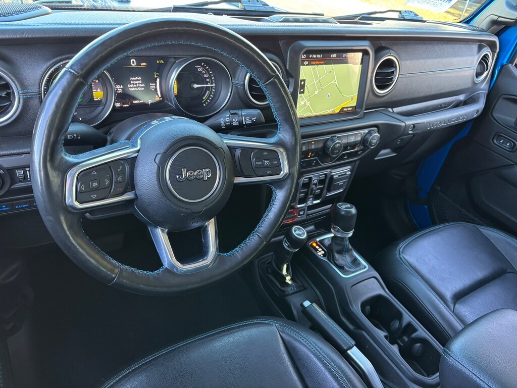 2021 Jeep Wrangler Unlimited Rubicon 4xe Wrangler Unlimited Rubicon 4xe, 4D Sport Utility, 2.0L I4 DOHC, 8-Speed Automatic, 4WD, Hydro Blue Pearl Coat, Black Leather, Cold Weather Group, Heated Front Seats, Heated Steering Wheel, Quick Order Package 29V, Remote Start System, Steel Bumper Group, Steel Front Bumper, Steel Rear Bumper, 4-Wheel Disc Brakes, 4.10 Rear Axle Ratio, 9 Speakers, ABS brakes, Air Conditioning, Alloy wheels, AM/FM radio: SiriusXM, Apple CarPlay/Android Auto, Auto-dimming Rear-View mirror, Automatic temperature control, Body Color 3-Piece Hard Top, Body Color Fender Flares, Brake assist, Compass, Cruise Control, Delay-off headlights, Driver door bin, Driver vanity mirror, Dual front impact airbags, Dual front side impact airbags, Electronic Stability Control, Emergency communication system: SiriusXM Guardian, Freedom Panel Storage Bag, Front anti-roll bar, Front Bucket Seats, Front Center Armrest w/Storage, Front dual zone A/C, Front fog lights, Front License Plate Bracket, Front reading lights, Fully automatic headlights, Garage door transmitter, Heated door mirrors, Illuminated entry, Integrated Off-Road Camera, Integrated roll-over protection, Leather steering wheel, Low tire pressure warning, MOPAR Satin Black Grille, Navigation System, Occupant sensing airbag, Outside temperature display, Panic alarm, ParkView Rear Back-Up Camera, Passenger door bin, Passenger vanity mirror, Performance Suspension, Power door mirrors, Power steering, Power windows, Premium Cloth Low-Back Bucket Seats, Radio data system, Radio: Uconnect 4C Nav w/8.4" Display, Rear anti-roll bar, Rear reading lights, Rear Window Defroster, Rear Window Wiper/Washer, Remote keyless entry, Remote Proximity Keyless Entry, Security system, Split folding rear seat, Steering wheel mounted audio controls, Tachometer, Telescoping steering wheel, Tilt steering wheel, Traction control, Trip computer, Variably intermittent wipers, Voltmeter, Wheels: 17" x 7.5" Machined/Painted Black, (Must finance with Ford Motor Credit to receive online pricing - see dealer for details.) Proudly, Wrangler Unlimited Rubicon 4xe, 4D Sport Utility, 2.0L I4 DOHC, 8-Speed Automatic, 4WD, Hydro Blue Pearl Coat, Black Leather, Cold Weather Group, Heated Front Seats, Heated Steering Wheel, Quick Order Package 29V, Remote Start System, Steel Bumper Group, Steel Front Bumper, Steel Rear Bumper. Hydro Blue Pearl Coat 8-Speed Automatic Clean CARFAX.