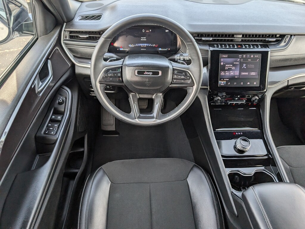 2023 Jeep Grand Cherokee Altitude Grand Cherokee Altitude, 4D Sport Utility, 3.6L V6 24V VVT, 8-Speed Automatic, 4WD, Bright White Clearcoat, Global Black Artificial Leather, 115-Volt Auxiliary Power Outlet, Altitude Appearance Package, Black Headliner, Capri Leatherette Seats w/Suede, Delete Laredo Badge, Gloss Black Exterior Accents, Gloss Black Roof Rails, Power Liftgate, Quick Order Package 23B Altitude, Rain-Sensing Windshield Wipers, Remote Start System, Secondary Active Grille Shutters, Selectable Tire Fill Alert, Wheels: 20" x 8.0" Gloss Black Aluminum, Wireless Charging Pad, 3.45 Rear Axle Ratio, 4-Wheel Disc Brakes, 6 Speakers, ABS brakes, Air Conditioning, Alloy wheels, Anti-whiplash front head restraints, Automatic temperature control, Brake assist, Cloth Seats, Compass, Cruise Control, Delay-off headlights, Driver door bin, Driver vanity mirror, Dual front impact airbags, Dual front side impact airbags, Electronic Stability Control, Four wheel independent suspension, Front anti-roll bar, Front Bucket Seats, Front dual zone A/C, Front reading lights, Fully automatic headlights, Heated door mirrors, Heavy-Duty Engine Cooling, Illuminated entry, Knee airbag, Low tire pressure warning, Occupant sensing airbag, Outside temperature display, Overhead airbag, Overhead console, Panic alarm, ParkView Rear Back-Up Camera, Passenger door bin, Passenger vanity mirror, Power door mirrors, Power driver seat, Power steering, Power Sunroof, Power windows, Radio data system, Rear anti-roll bar, Rear reading lights, Rear window defroster, Rear window wiper, Remote keyless entry, Security system, Speed-Sensitive Wipers, Split folding rear seat, Spoiler, Steering wheel mounted audio controls, Tachometer, Telescoping steering wheel, Tilt steering wheel, Traction control, Trip computer, Variably intermittent wipers, Voltmeter, Wheels: 17" x 6.5" Fully Painted Aluminum, (Must finance with Ford Motor Credit to receive online pricing - see dealer for details.) Proudly, Grand Cherokee Altitude, 4D Sport Utility, 3.6L V6 24V VVT, 8-Speed Automatic, 4WD, Bright White Clearcoat, Global Black Artificial Leather, 115-Volt Auxiliary Power Outlet, Altitude Appearance Package, Black Headliner, Capri Leatherette Seats w/Suede, Delete Laredo Badge, Gloss Black Exterior Accents, Gloss Black Roof Rails, Power Liftgate, Quick Order Package 23B Altitude, Rain-Sensing Windshield Wipers, Remote Start System, Secondary Active Grille Shutters, Selectable Tire Fill Alert, Wheels: 20" x 8.0" Gloss Black Aluminum, Wireless Charging Pad. Bright White Clearcoat 8-Speed Automatic Clean CARFAX. CARFAX One-Owner.