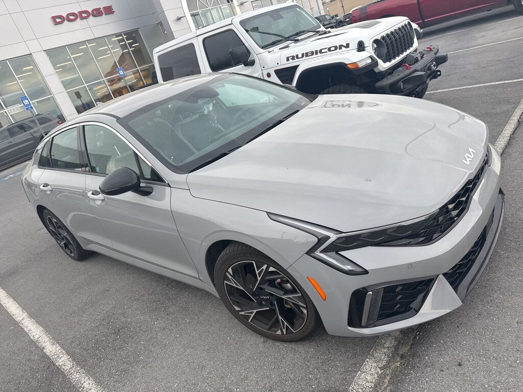2025 Kia K5 GT-Line 4-Wheel Disc Brakes, 6 Speakers, ABS brakes, Air Conditioning, Alloy wheels, AM/FM radio: SiriusXM, Auto High-beam Headlights, Automatic temperature control, Brake assist, Bumpers: body-color, Carpeted Floor Mats, Cruise Control, Delay-off headlights, Driver door bin, Driver vanity mirror, Dual front impact airbags, Dual front side impact airbags, Electronic Stability Control, Emergency communication system: Kia Connect (includes 1 year free trial), Four wheel independent suspension, Front anti-roll bar, Front Bucket Seats, Front Center Armrest, Front dual zone A/C, Front fog lights, Front reading lights, Fully automatic headlights, Heated and Cooled Seats, Heated door mirrors, Heated Front Bucket Seats, Heated steering wheel, Illuminated entry, Knee airbag, Leather Shift Knob, Leather steering wheel, Low tire pressure warning, Navigation System, Occupant sensing airbag, Outside temperature display, Overhead airbag, Overhead console, Panic alarm, Passenger door bin, Passenger vanity mirror, Power door mirrors, Power driver seat, Power steering, Power windows, Radio data system, Radio: AM/FM Audio System, Rear anti-roll bar, Rear seat center armrest, Rear side impact airbag, Rear window defroster, Remote keyless entry, Security system, Speed-sensing steering, Split folding rear seat, Sport steering wheel, Steering wheel mounted audio controls, Tachometer, Telescoping steering wheel, Tilt steering wheel, Traction control, Trip computer, Turn signal indicator mirrors, Variably intermittent wipers, Wheels: 18" x 7.5J Gloss Black Machined Finish Alloy, (Must finance with Ford Motor Credit to receive online pricing - see dealer for details.) Proudly. Every Mtn View Ford Lincoln pre-owned vehicle is inspected, reconditioned, and priced to deliver unmatched value. From local trades to certified models, each one meets our highest standards for quality and reliability. Transparent pricing, flexible financing, and a no-pressure experience make it easy to shop with confidence from anywhere. Inventory like this does not last long. With limited similar vehicles available across the region, this one is positioned to move quickly. Contact our sales team today for availability, delivery options, and a personalized walkaround video. Important Information: Advertised pricing reflects financing through dealer-approved lenders and is subject to credit approval through Ford Motor Credit. See dealer for details. Wolf Gray 8-Speed Automatic Clean CARFAX. CARFAX One-Owner.