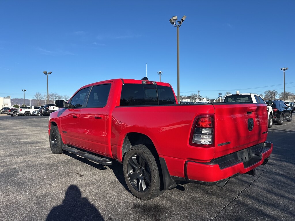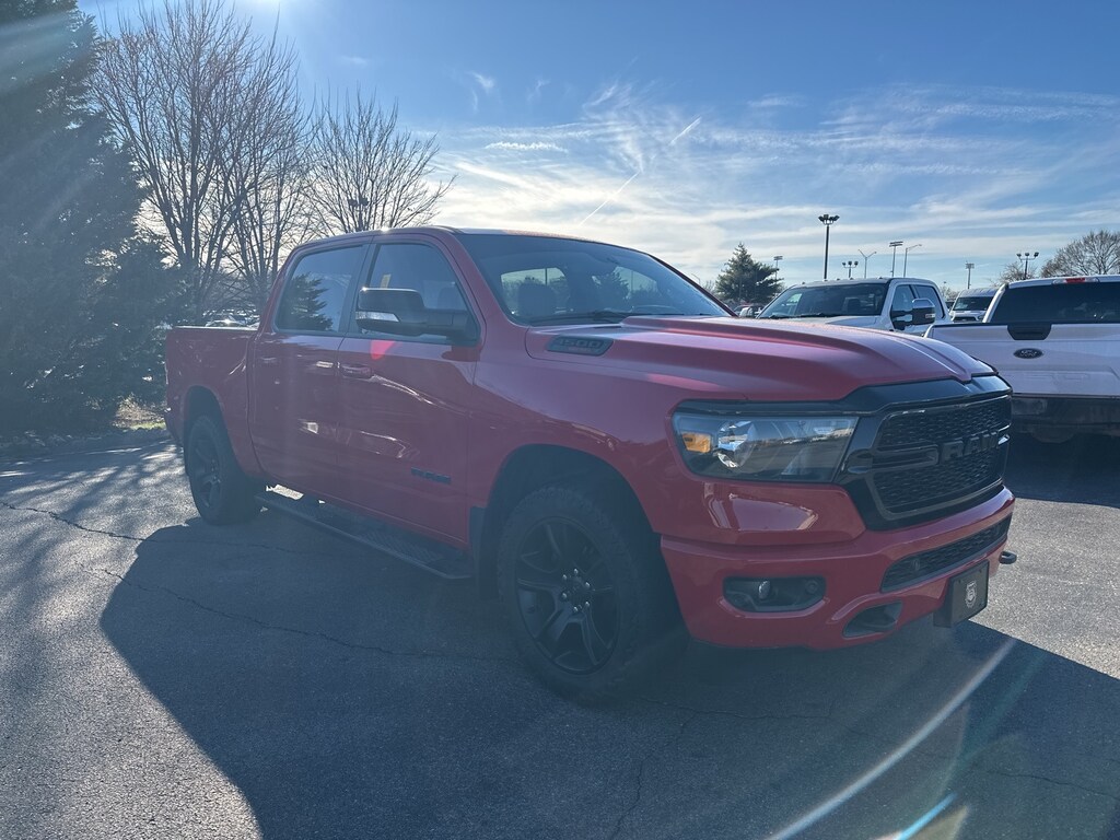 2022 Ram 1500 Big Horn/Lone Star 115V Auxiliary Power Outlet, 115V Auxiliary Rear Power Outlet, 2nd Row In Floor Storage Bins, 3 Rear Seat Head Restraints, 3.21 Rear Axle Ratio, 4 Way Front Headrests, 4-Wheel Disc Brakes, 400W Inverter, 48V Belt Starter Generator, 4G LTE Wi-Fi Hot Spot, 6 Speakers, 8.4" Touchscreen Display, ABS brakes, Air Conditioning, Air Conditioning ATC w/Dual Zone Control, Alloy wheels, AM/FM radio, Anti-Spin Differential Rear Axle, Apple CarPlay, Auto-Dimming Exterior Driver Mirror, Auto-Dimming Rear-View Mirror, Big Horn Badge, Big Horn Level 2 Equipment Group, Black Exterior Mirrors, Black Exterior Truck Badging, Black Headlamp Bezels, Black Interior Accents, Black Premium Power Mirrors, Bluetooth Handsfree Phone & Audio, Body Color Front Bumper, Body Color Rear Bumper w/Step Pads, Brake assist, Bucket Seats, Bumpers: chrome, Class IV Receiver Hitch, Cloth Bench Seat, Cluster 7.0" TFT Color Display, Compass, Connectivity - US/Canada, Convex Wide-Angle Mirror Insert, Cruise Control, Delay-off headlights, Delete LED Lamp - Floor Console Bin, Deluxe Cloth Bucket Seats, Driver door bin, Dual Exhaust w/Black Tips, Dual front impact airbags, Dual front side impact airbags, Electronic Stability Control, Emergency communication system: SiriusXM Guardian, Exterior Mirrors Courtesy Lamps, Exterior Mirrors w/Heating Element, Exterior Mirrors w/Supplemental Signals, For Details, Visit DriveUconnect.com, Front anti-roll bar, Front Center Armrest w/Storage, Front fog lights, Front reading lights, Front Seat Back Map Pockets, Front wheel independent suspension, Full Length Floor Console, Fully automatic headlights, Global Telematics Box Module (TBM), Glove Box Lamp, Google Android Auto, GPS Antenna Input, Heated door mirrors, Heated Front Seats, Heated Steering Wheel, Illuminated entry, Integrated Center Stack Radio, Integrated Voice Command w/Bluetooth, Leather steering wheel, Low tire pressure warning, Manual Adjust 4-Way Front Passenger Seat, Media Hub w/2 Charge Only USBs, MOPAR Front & Rear Rubber Floor Mats, Night Edition (DISC), Occupant sensing airbag, Outside temperature display, Overhead airbag, Overhead console, Panic alarm, ParkSense Front/Rear Park Assist w/Stop, ParkView Rear Back-Up Camera, Passenger door bin, Passenger vanity mirror, Power 2-Way Driver Lumbar Adjust, Power 8-Way Driver Seat, Power Adjustable Pedals, Power door mirrors, Power steering, Power windows, Power-Folding Mirrors, Quick Order Package 28Z Big Horn, Radio data system, Radio: Uconnect 3 w/5" Display, Radio: Uconnect 5 W w/8.4" Display, Rear 60/40 Folding Seat, Rear anti-roll bar, Rear Center Armrest, Rear Dome w/On/Off Switch Lamp, Rear Power Sliding Window, Rear seat center armrest, Rear step bumper, Rear Underseat Compartment Storage (DISC), Rear Window Defroster, Remote keyless entry, Remote Start System, Security Alarm, SiriusXM Radio Service, SiriusXM Satellite Radio, Split folding rear seat, Steering wheel mounted audio controls, Sun Visors w/Illuminated Vanity Mirrors, Tachometer, Telescoping steering wheel, Tilt steering wheel, Traction control, Trip computer, Universal Garage Door Opener, USB Host Flip, Variably intermittent wipers, Voltmeter, Wheels: 18" x 8" Cast-Aluminum Painted, Wheels: 20" x 9.0" Premium Paint/Polished (DISC), (Must finance with Ford Motor Credit to receive online pricing - see dealer for details.) Proudly. Flame Red Clearcoat 8-Speed Automatic