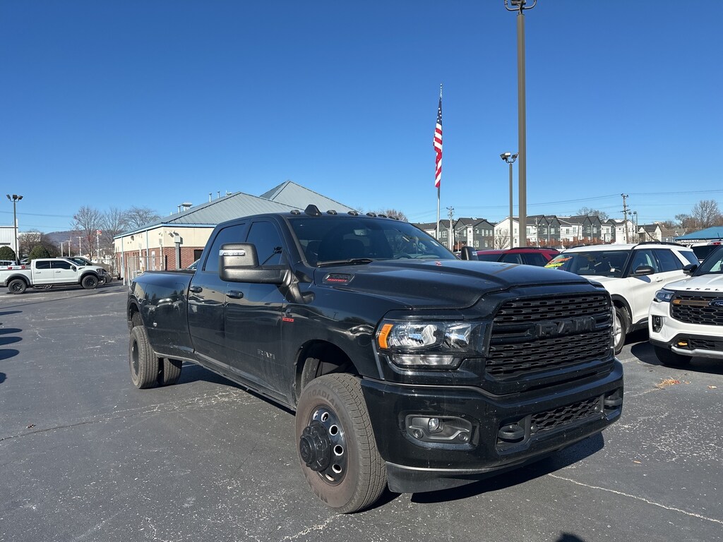 2023 Ram 3500 Big Horn 115V Auxiliary Front Power Outlet, 12" Touchscreen Display, 2 Way Rear Headrest Seat, 220 Amp Alternator, 3.73 Axle Ratio, 4 Way Front Headrests, 4-Wheel Disc Brakes, 40/20/40 Split Bench Seat, 400W Inverter, 50 Gallon Fuel Tank, 5th Wheel/Gooseneck Towing Prep Group, 6 Speakers, 9 Alpine Speakers w/Subwoofer, ABS brakes, Active Noise Control System, Air Conditioning, Air Conditioning ATC w/Dual Zone Control, Auto Power-Folding Mirrors, Auto-dimming Rear-View mirror, Black Exterior Mirrors, Black Exterior Truck Badging, Black Headlamp Bezels, Black Interior Accents, Blind Spot & Cross Path Detection, Bluetooth Handsfree Phone & Audio, Body Color Door Handles, Brake assist, Bumpers: chrome, Center Hub, Clearance Lamps, Cloth 40/20/40 Bench Seat, Compass, Connected Travel & Traffic Services, Connectivity - US/Canada, Cruise Control, Delay-off headlights, Driver door bin, Dual front impact airbags, Dual front side impact airbags, Dual Glove Boxes, Dual Rear Wheels, Electronic Stability Control, Electronically Controlled Throttle, Emergency communication system: SiriusXM Guardian, Exterior 115V AC Outlet, Exterior Mirrors w/Supplemental Signals, For Details Visit DriveUconnect.com, For More Info, Call 800-643-2112, Front anti-roll bar, Front Armrest w/Cupholders, Front Center Armrest w/Storage, Front Fog Lamps, Front reading lights, Fully automatic headlights, Global Telematics Box Module (TBM), Glove Box Lamp, GPS Antenna Input, GPS Navigation, Grille-Gloss Black Nostrils/Molded in Color Black, HD Radio, Heated door mirrors, Heated Front Seats, Illuminated entry, Integrated Voice Command w/Bluetooth, Level B Equipment Group, Locking Lower Glove Box, Low tire pressure warning, Manual Adjust 4-Way Driver Seat, Manual Adjust 4-Way Front Passenger Seat, Media Hub w/2 Charge Only USBs, Mirror Running Lights, MOPAR Front & Rear Rubber Floor Mats, Night Edition, Occupant sensing airbag, Outside temperature display, Overhead airbag, Overhead console, Painted Front Bumper, Panic alarm, ParkSense Front/Rear Park Assist System, ParkView Rear Back-Up Camera, Passenger door bin, Passenger vanity mirror, Power Adjust Mirrors, Power Adjustable Pedals, Power door mirrors, Power steering, Power windows, Power-Adjustable Convex Aux Mirrors, Quick Order Package 2HZ Big Horn, Radio data system, Radio: Uconnect 3 w/5" Display, Radio: Uconnect 5 Nav w/12.0" Display, Rear Folding Seat, Rear seat center armrest, Rear step bumper, Rear Wheelhouse Liners, Rear Window Defroster, Remote keyless entry, Remote Start System, Security Alarm, Selectable Tire Fill Alert, SiriusXM Radio Service, Steering Wheel Mounted Audio Controls, Storage Tray, Tachometer, Tilt steering wheel, Tip Start, Traction control, Trailer Tow Pages, Trip computer, Turn signal indicator mirrors, Universal Garage Door Opener, Variably intermittent wipers, Voltmeter, Wheels: 17" x 6.0" Black Machined Aluminum, Wheels: 18" x 8.0" Steel Chrome Clad, (Must finance with Ford Motor Credit to receive online pricing - see dealer for details.) Proudly. Diamond Black Crystal Pearlcoat 6-Speed Automatic Clean CARFAX.