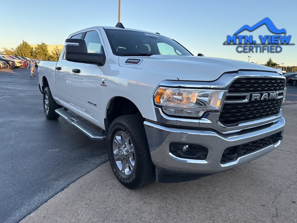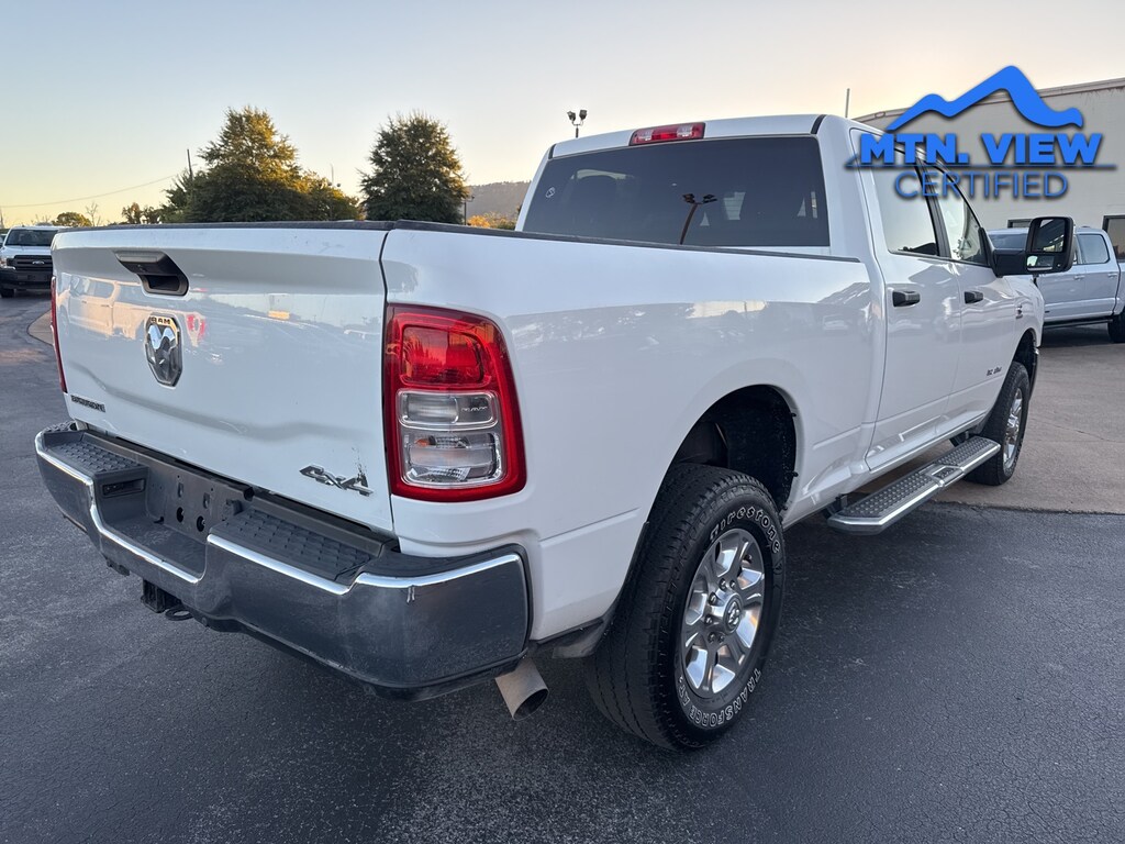 Buy With Confidence at Mtn View Ford Lincoln â" Chattanooga TN Looking for a quality vehicle at a great price? You have found the right place. Every car, truck, and SUV on our lot is thoroughly inspected and professionally reconditioned before sale, so whether it is a certified pre-owned or a fresh local trade, you are getting a vehicle you can trust. We keep it simple with transparent pricing, competitive financing, and a fast, no-hassle experience from start to finish. Our team is here to make your buying process smooth, easy, and pressure free. Why Choose Us ⢠Rigorous multi point inspections on every vehicle ⢠Easy flexible financing options ⢠No games no gimmicks just real value ⢠Friendly knowledgeable team focused on your needs Important Info Advertised prices reflect financing through dealer approved lenders. Buyer must finance with dealer to qualify. Not all will qualify. Tax title license and dealer installed options not included. Contact dealer for full details. Pricing includes financing with dealership preferred lender. Ready to make your next move? We are just a call or click away. Schedule your VIP test drive today. 2024 Ram 2500 Big Horn 2 Way Rear Headrest Seat, 220 Amp Alternator, 2nd Row In Floor Storage Bins, 3.73 Axle Ratio, 4 Way Front Headrests, 4-Wheel Disc Brakes, 40/20/40 Split Bench Seat, 4G LTE Wi-Fi Hot Spot, 6 Speakers, ABS brakes, Active Noise Control System, Air Conditioning, Anti-Spin Differential Rear Axle, Auto Power-Folding Mirrors, Black Exterior Mirrors, Bluetooth Handsfree Phone & Audio, Brake assist, Bumpers: chrome, Center Hub, Center Stack Storage Drawer, Chrome Flat Cab-Length Side Steps, Cloth 40/20/40 Bench Seat, Cold Weather Group, Compass, Connectivity - US/Canada, Cruise Control, Delay-off headlights, Driver door bin, Dual front impact airbags, Dual front side impact airbags, Electronic Stability Control, Electronically Controlled Throttle, Emergency communication system: SiriusXM Guardian, Engine Block Heater, Exterior Mirrors Courtesy Lamps, Exterior Mirrors w/Heating Element, Exterior Mirrors w/Supplemental Signals, Front anti-roll bar, Front Center Armrest w/Storage, Front Fog Lamps, Front License Plate Bracket, Front reading lights, Fully automatic headlights, Global Telematics Box Module (TBM), Glove Box Lamp, Google Android Auto, GPS Antenna Input, Heated door mirrors, Heavy Duty Snow Plow Prep Group, Illuminated entry, Integrated Center Stack Radio, Integrated Voice Command w/Bluetooth, Leather Wrapped Steering Wheel, Level 1 Equipment Group, Locking Lower Glove Box, Low tire pressure warning, Manual Adjust 4-Way Driver Seat, Mirror Running Lights, MOPAR Spray In Bedliner, Occupant sensing airbag, Off Road Package, Outside temperature display, Overhead airbag, Overhead console, Panic alarm, ParkSense Front/Rear Park Assist System, ParkView Rear Back-Up Camera, Passenger door bin, Passenger vanity mirror, Power 2-Way Driver Lumbar Adjust, Power Adjust Mirrors, Power door mirrors, Power Heated Fold Telescope Mirrors, Power steering, Power windows, Quick Order Package 2HZ Big Horn, Radio data system, Radio: Uconnect 3 w/5" Display, Radio: Uconnect 5 W w/8.4" Display, Radio: Uconnect 5 W w/8.4" Display (A62), Rear anti-roll bar, Rear Backup Alarm, Rear Dome w/On/Off Switch Lamp, Rear Folding Seat, Rear seat center armrest, Rear step bumper, Rear Window Defroster, Remote keyless entry, SiriusXM Radio Service, SiriusXM Satellite Radio, Steering Wheel Mounted Audio Controls, Tachometer, Tilt steering wheel, Tip Start, Tow Hooks, Traction control, Trip computer, Turn signal indicator mirrors, Variably intermittent wipers, Voltmeter, Wheels: 18" x 8.0" Polished Aluminum, Wheels: 18" x 8.0" Steel Chrome Clad, (Must finance with Ford Motor Credit to receive online pricing - see dealer for details.) Proudly. 6-Speed Automatic Recent Arrival! Clean CARFAX.
